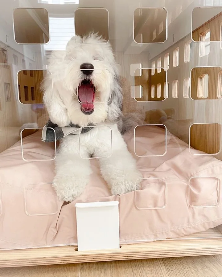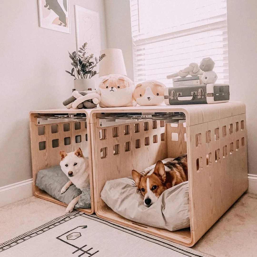 • Modern Transparent Acrylic Collapsible Wooden Frame Furniture Dog Kennel Dog Crate Bed Outdoor