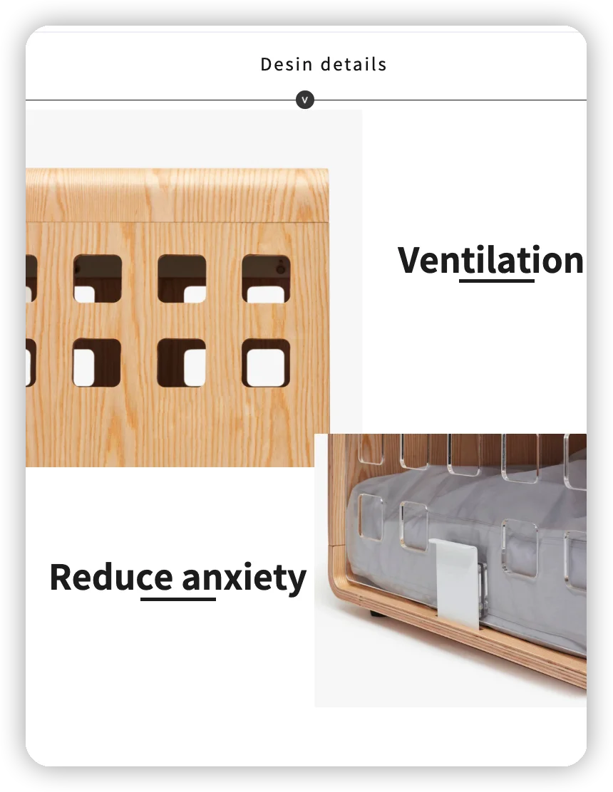 - The minimal design blends seamlessly into any home as a functional side table and balances generous airflow and light in a serene den-like environment for your pet to recover from adventuring.