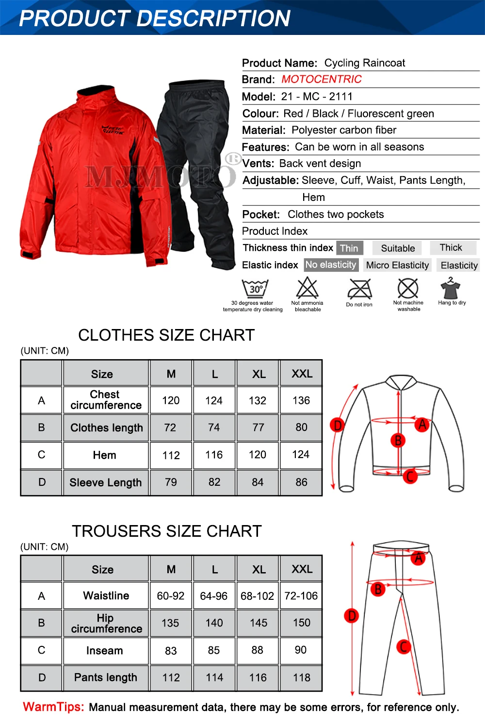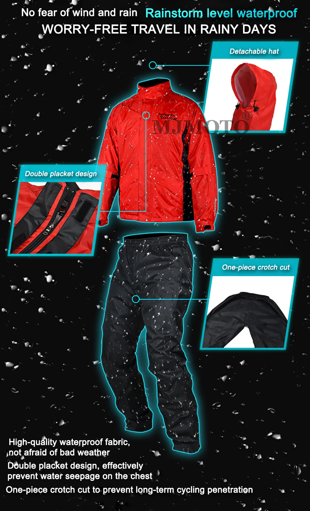 Motocentric Men's Motorcycle Riding Raincoat Waterproof Motorcyclist Motocross Suit Rain Pants Rain Jacket Split Women Raincoat