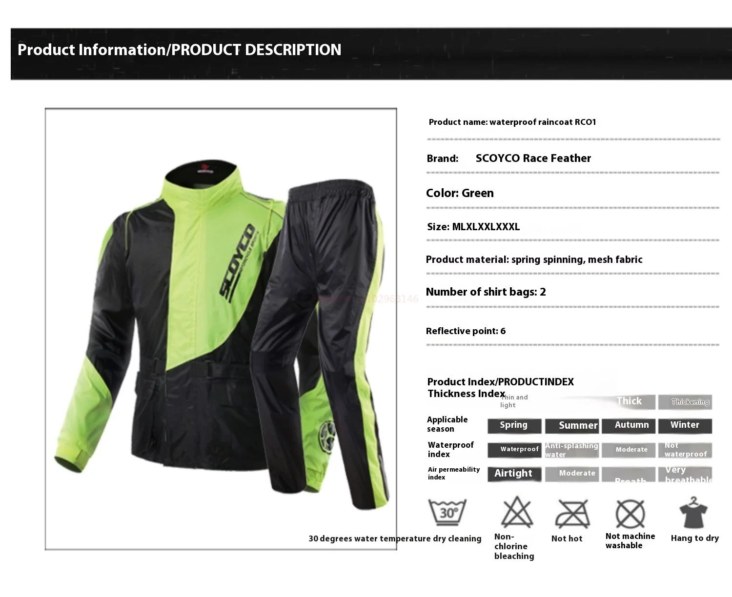 Choose Options Quick view Motorcycle Raincoat Waterproof Suit Jackets Outdoor Riding Split type Breathable Raincoat Rain Pants Light Reflective Men Women $8,233.90 Specification: