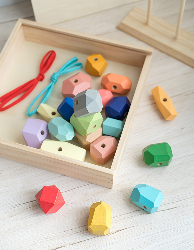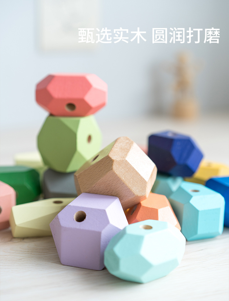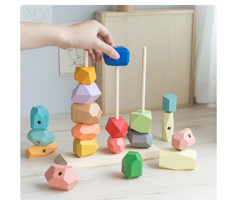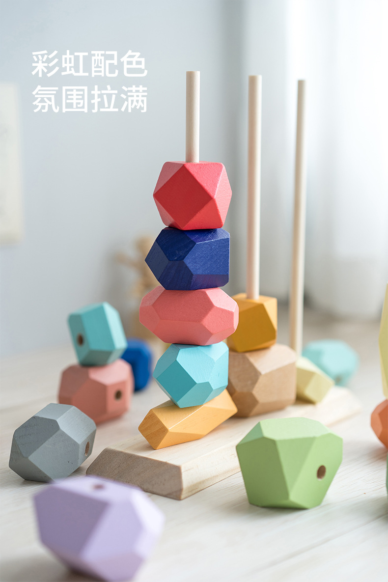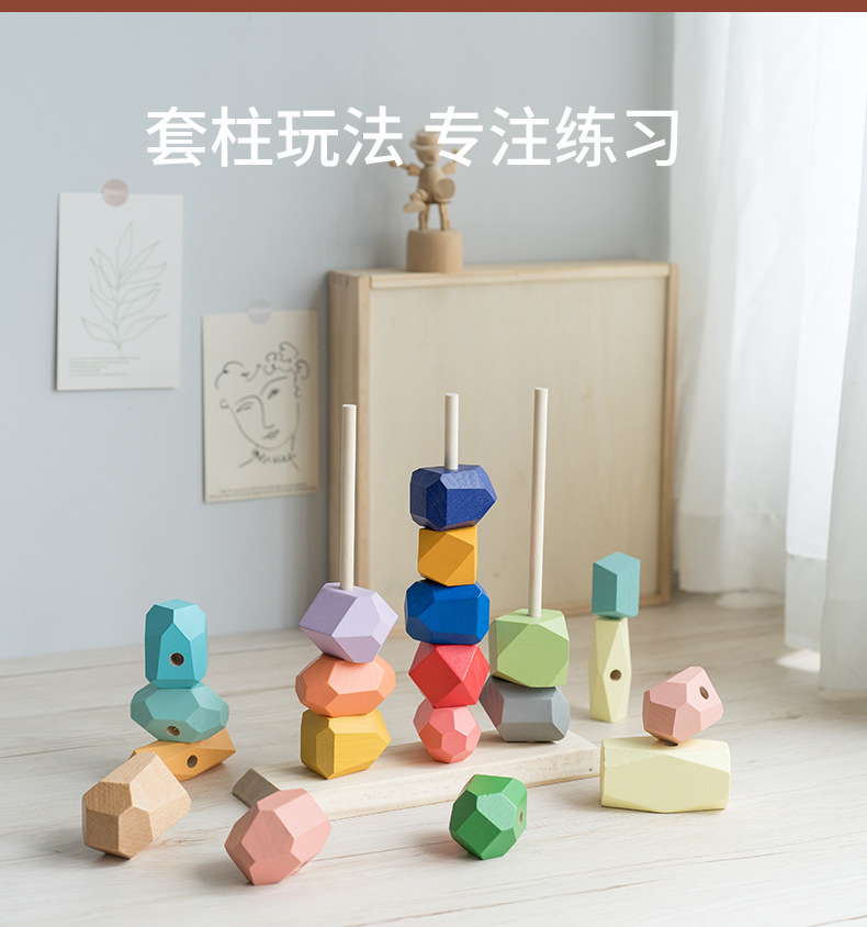 Multi-function Wooden Rainbow Stones Balance Building Blocks Stacking Beading Wood Toy Montessori Educational Toys for Children