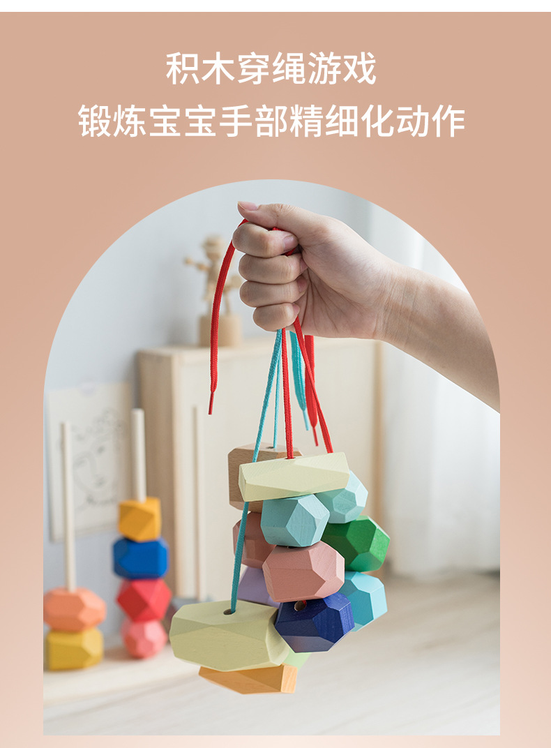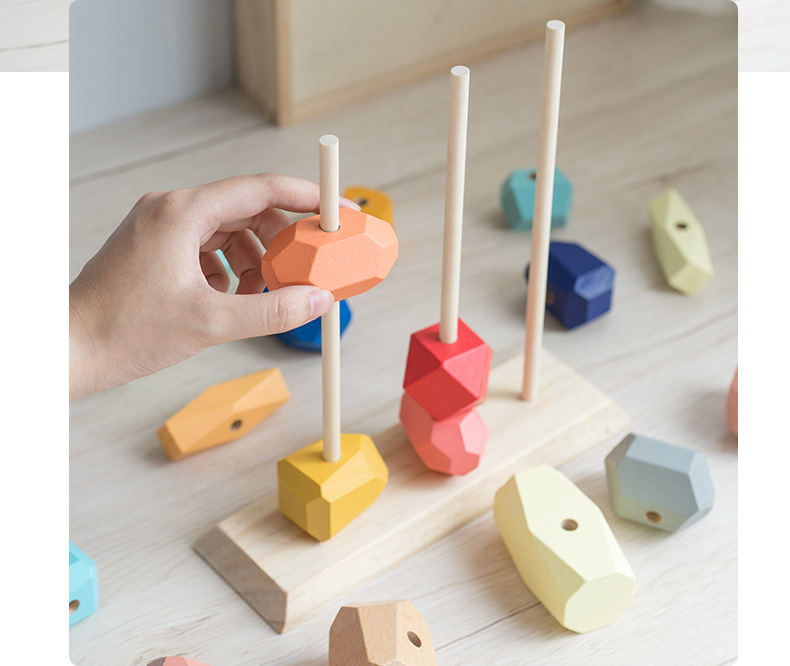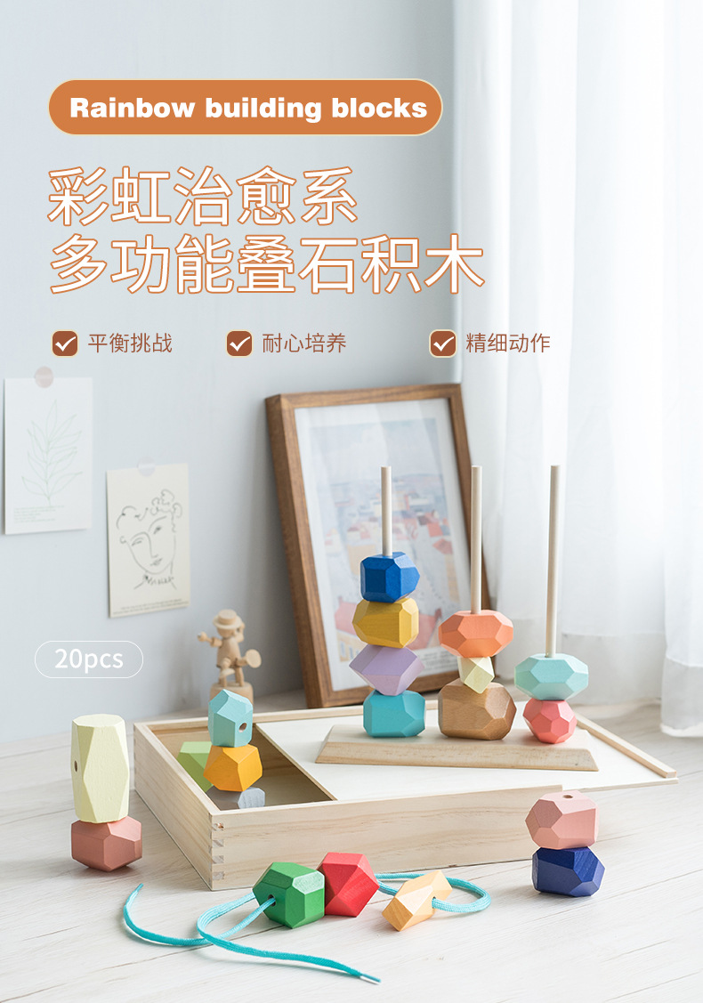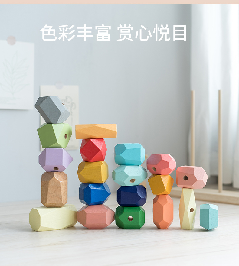 • Multi-function Wooden Rainbow Stones Balance Building Blocks Stacking Beading Wood Toy Montessori Educational Toys for Children