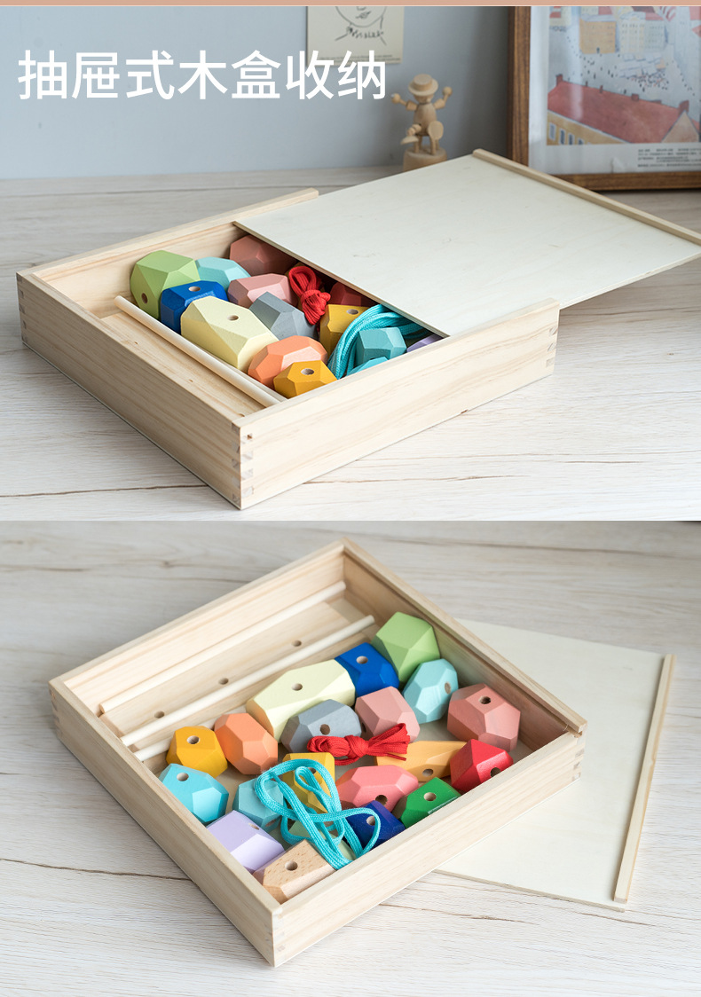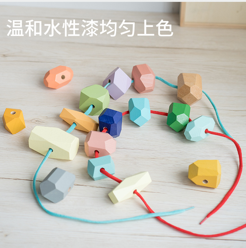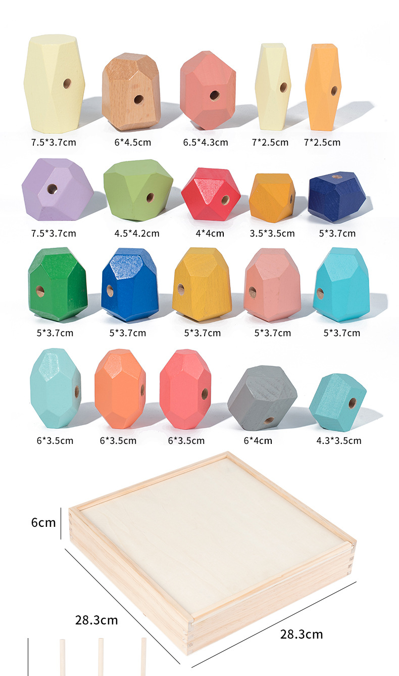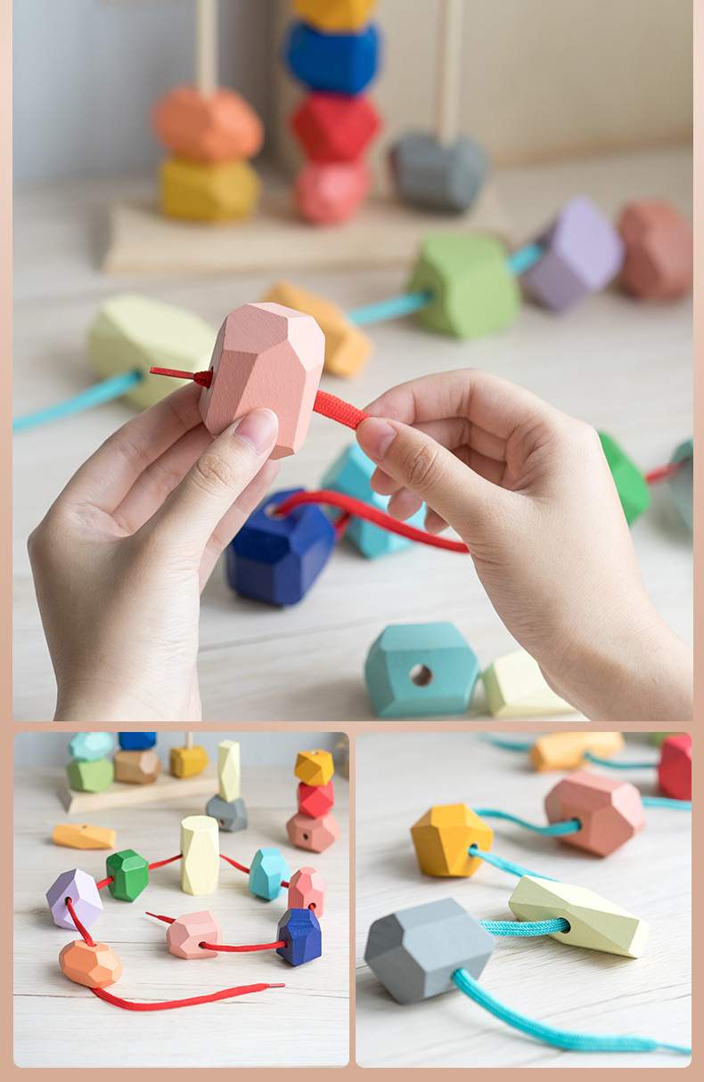 • Multi-function Wooden Rainbow Stones Balance Building Blocks Stacking Beading Wood Toy Montessori Educational Toys for Children