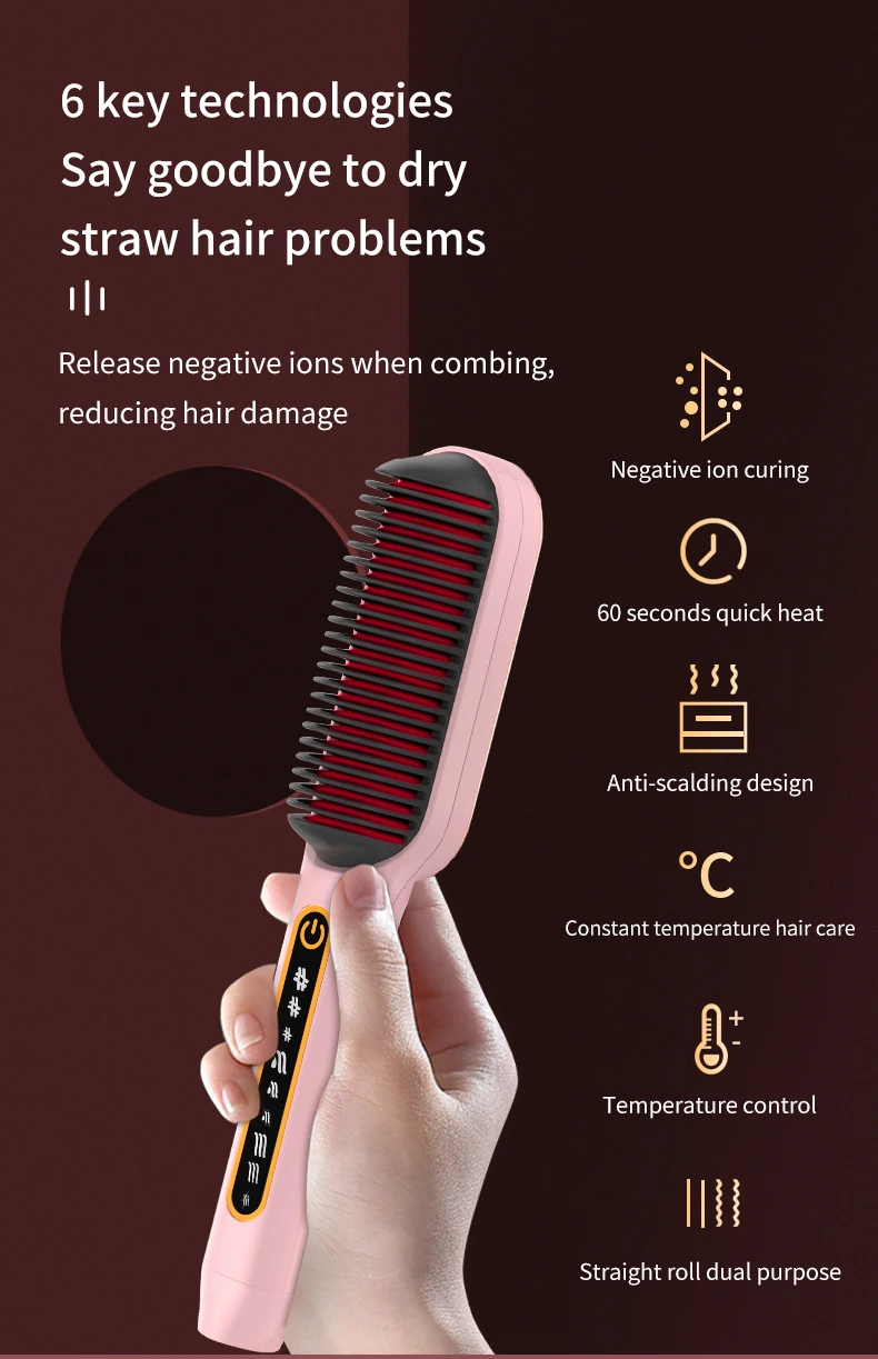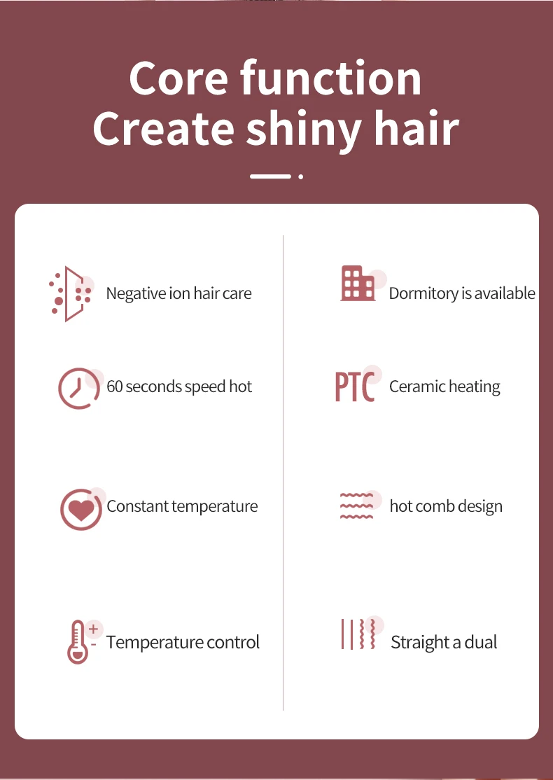 • Multifunctional electric brush hair dryer ion hair straightening curling iron blower comb hot air styling salon tools