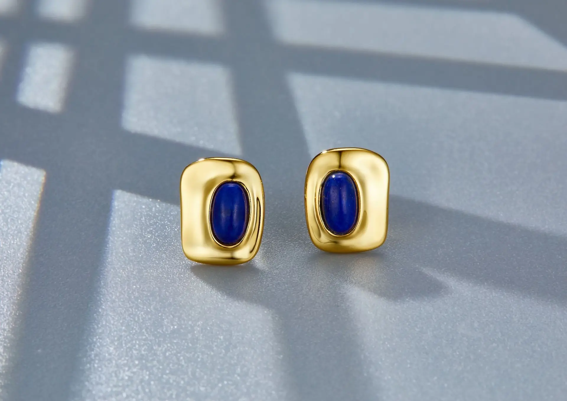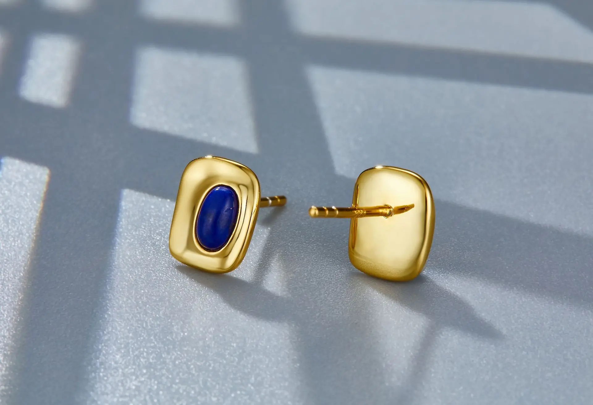 Description Description 【Metal】:International standard 925 Sterling Silver【Main Stone】:Lapis Lazuli【Size】:Length & width approx. 9mm*7mm【Weight】:approx. 1.7g【Electroplate】:18K gold【Process】:Surface polishedManual Inlaid View AllClose