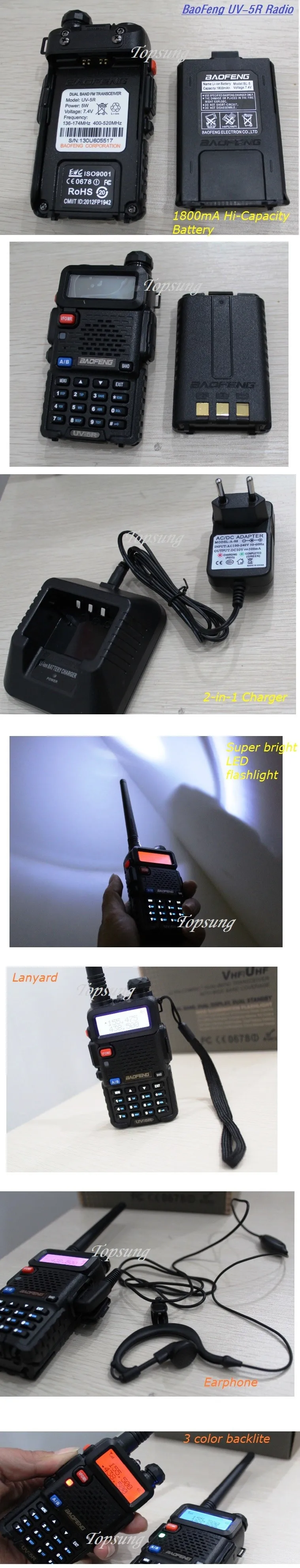 New baofeng uv 5r two way radio uv-5r dual band walkie talkie vhf/uhf transceiver FM radio SOS bright flashlight + accessories (charger earphone battery)