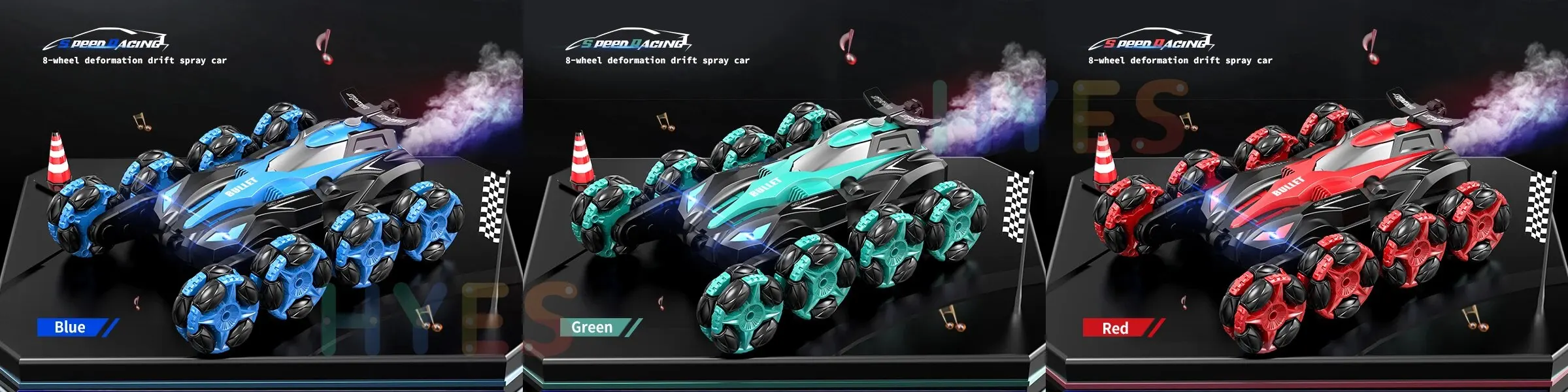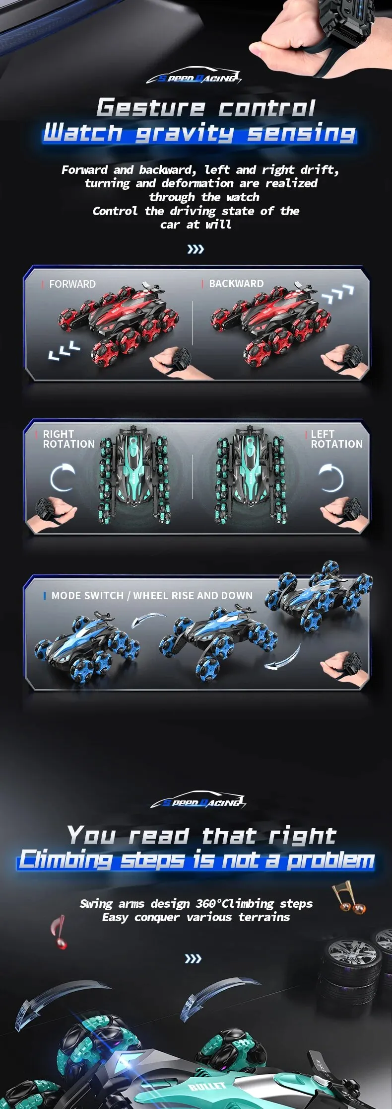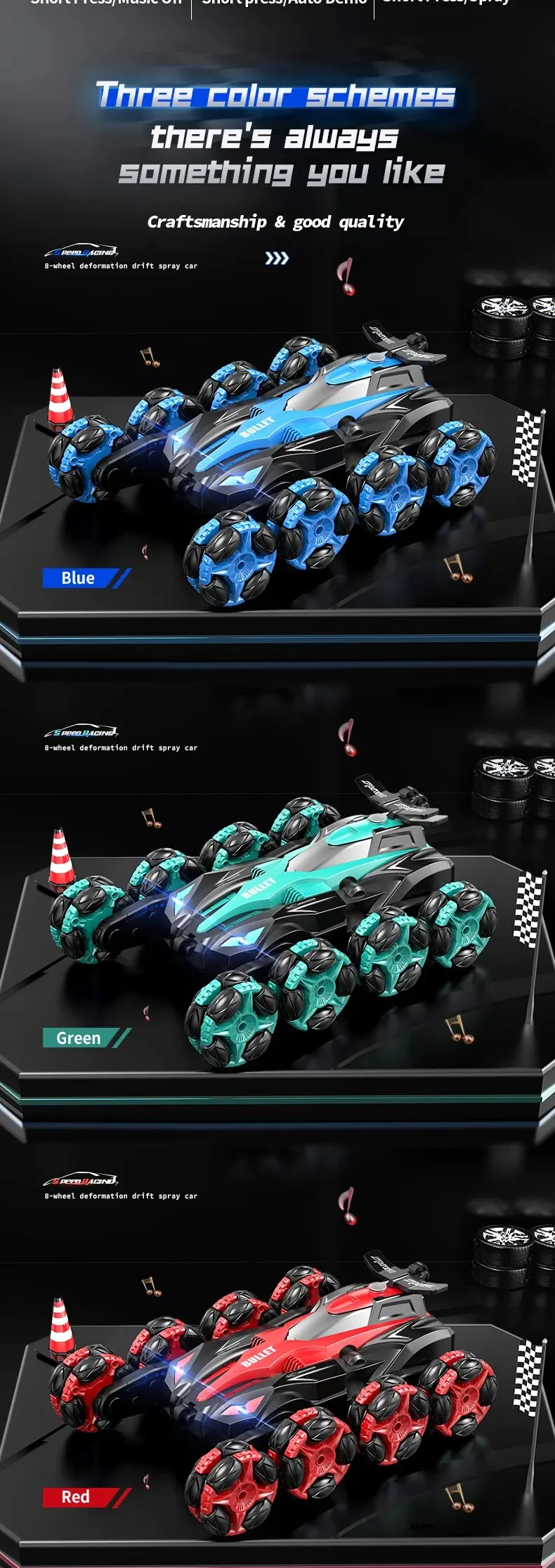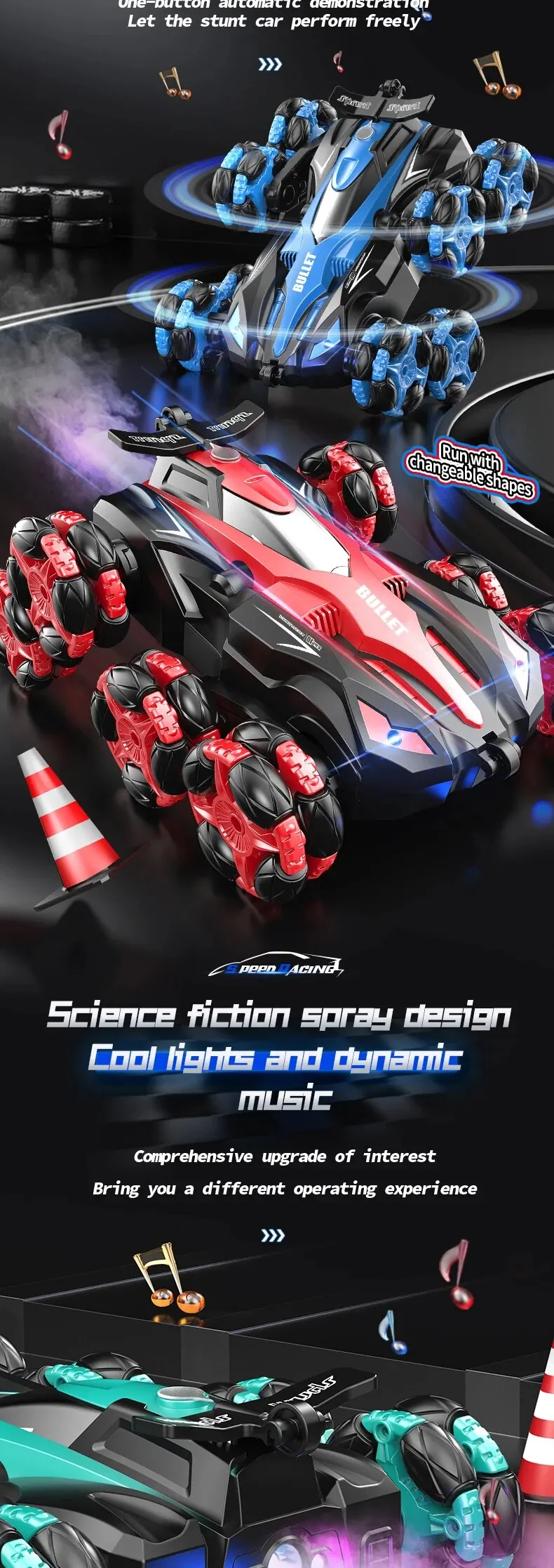 ?RC STUNT CAR TOY-Our 2.4Ghz remote control car is the perfect toy for boys ages 4-7, 8-12. Featuring 8 independently controlled wheels, this RC car can perform stunts at the touch of a button. With 360 degrees rotating capabilities and the ability to race, drift, double-sided drive and climb obstacles, your kids imagination will soar with endless possibilities?.