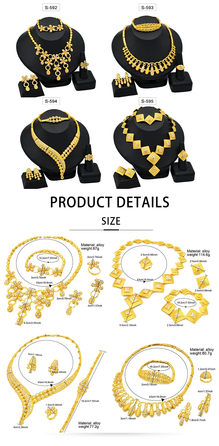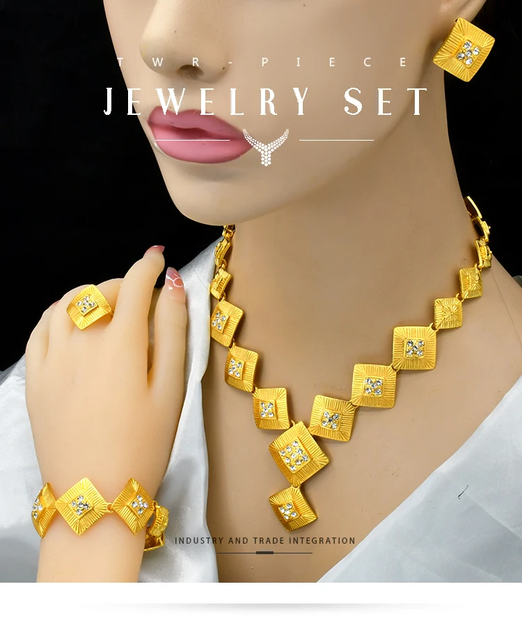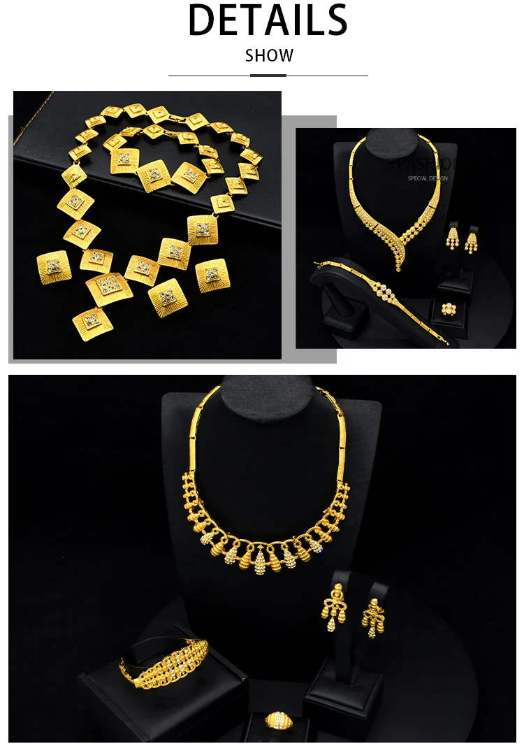 Choose Options Quick view Popodion New Dubai 24K Gold Plating Jewelry Necklace Bracelet Ring Women's Earring Jewelry Set Of Four YY10299 $134.42 New Dubai 24K Gilded Jewelry Necklace Bracelet Ring Women's Earring Jewelry Set of Four