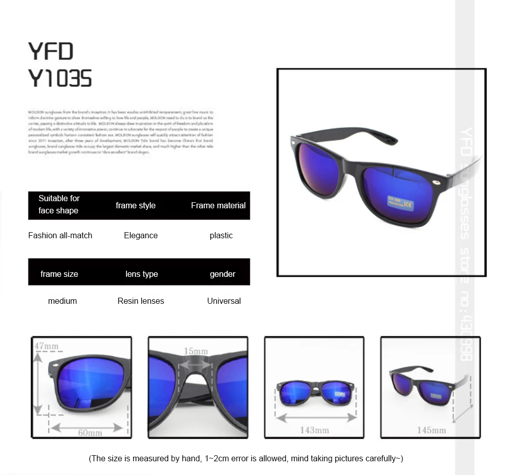 Note: Some lenses have different colors under different sunlight and different illumination angles.