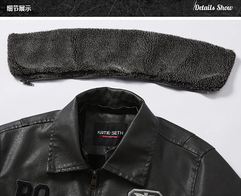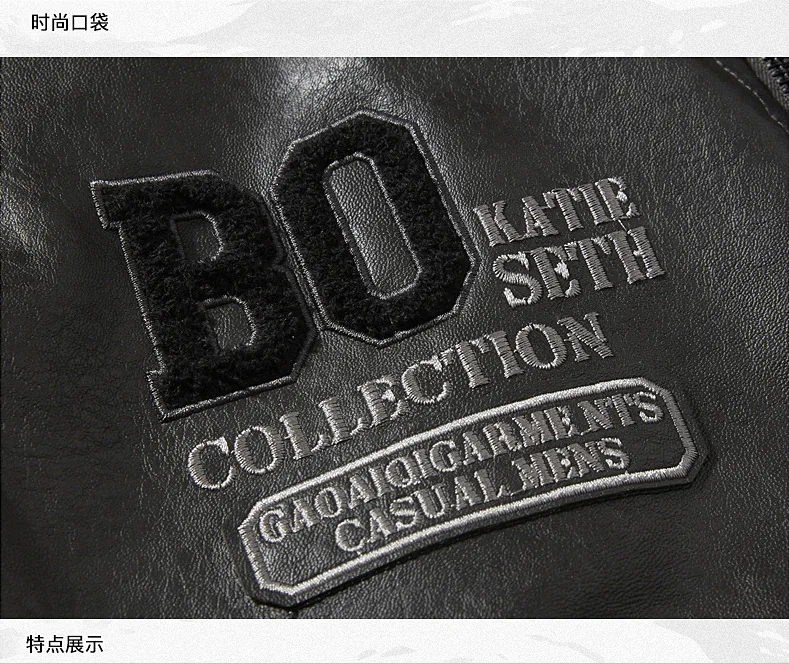New Motorcycle Jacket for Men In Autumn/Winter Fashion Casual Leather Embroidered Aviator Jacket Velvet Pu Jacke