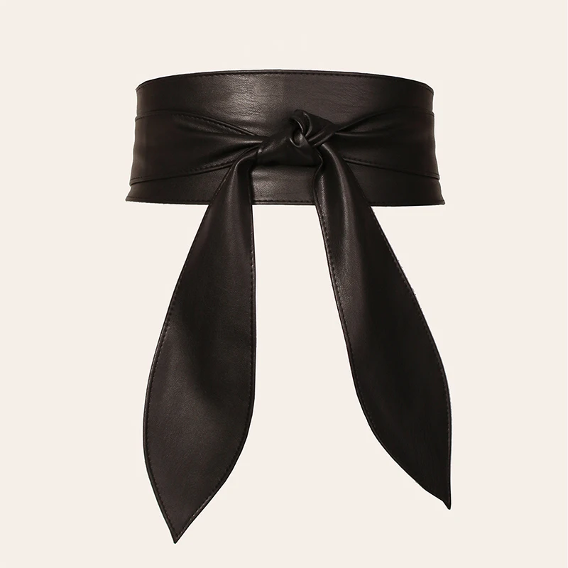 • New Popular Waistband Women Soft Pu Leather Belts Ties Bowknot Wide Waistbands Ladies Dress Decoration Lace Up Belt Cummerbund