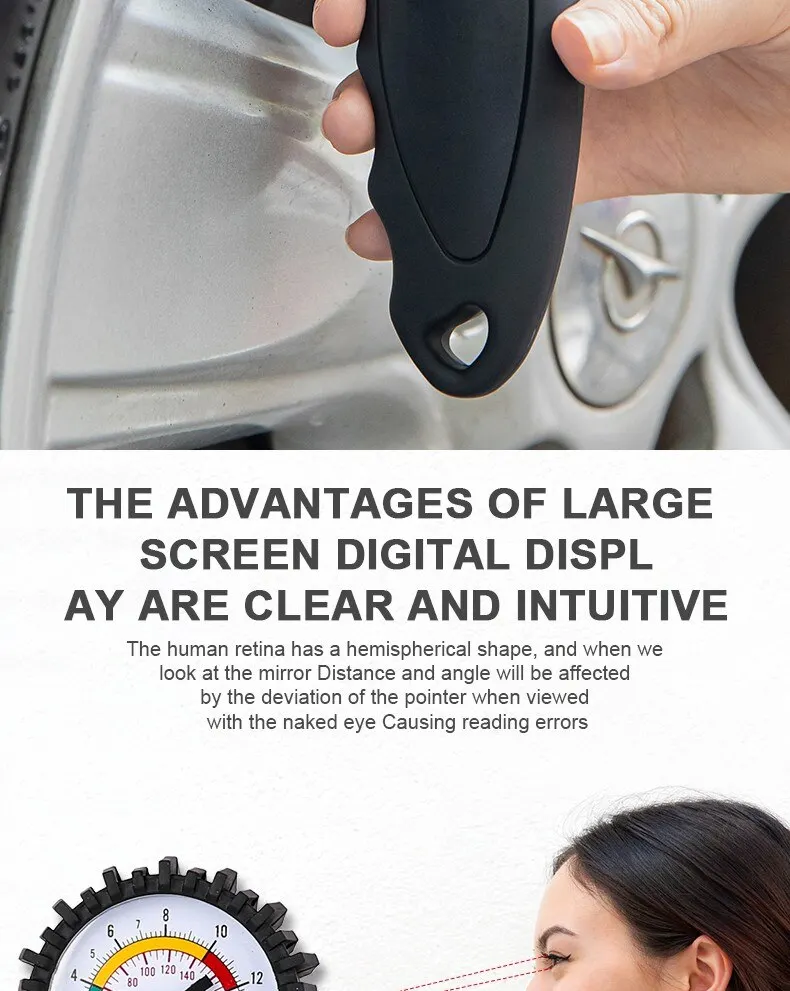 • Easy to use :The product is easy to use, simply insert it into the tire valve and read the pressure on the display.