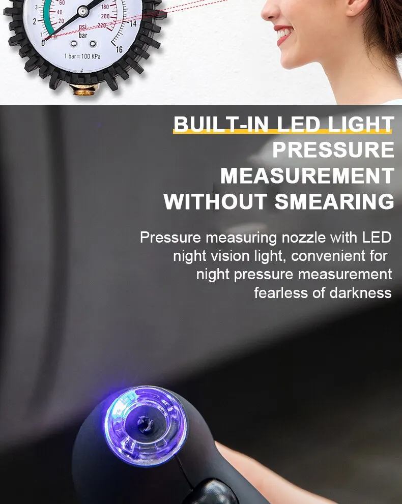 • High precision digital tire pressure monitoring :The product offers high precision digital tire pressure monitoring, ensuring that you always know the exact pressure of your tires.