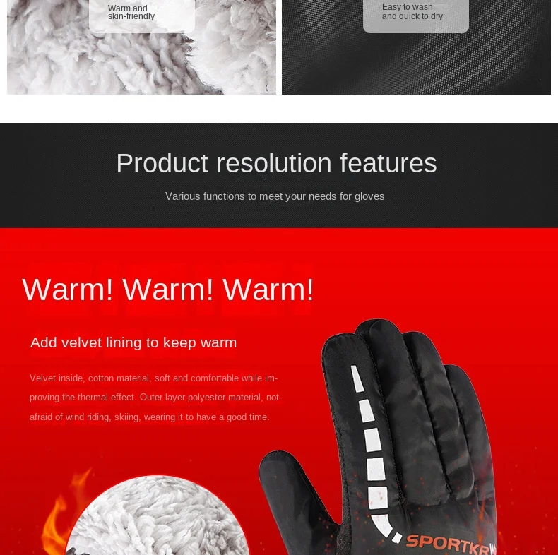 Choose Options Quick view Winter Motorcycle Cycling Gloves Thickened Waterproof Skiing Gloves Plus Velvet Warm Sport Gloves for Outdoor Riding Hiking $22.43 - $33.96 Brand Name:NoneOrigin:Mainland ChinaCN:ZhejiangMaterial:PolyesterModel Number:Warm GlovesFeature:WashableGender:UniversalItem Type:Gloves & MittensType:Full FingerSport...