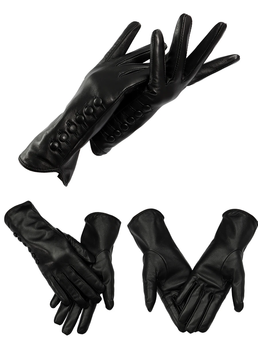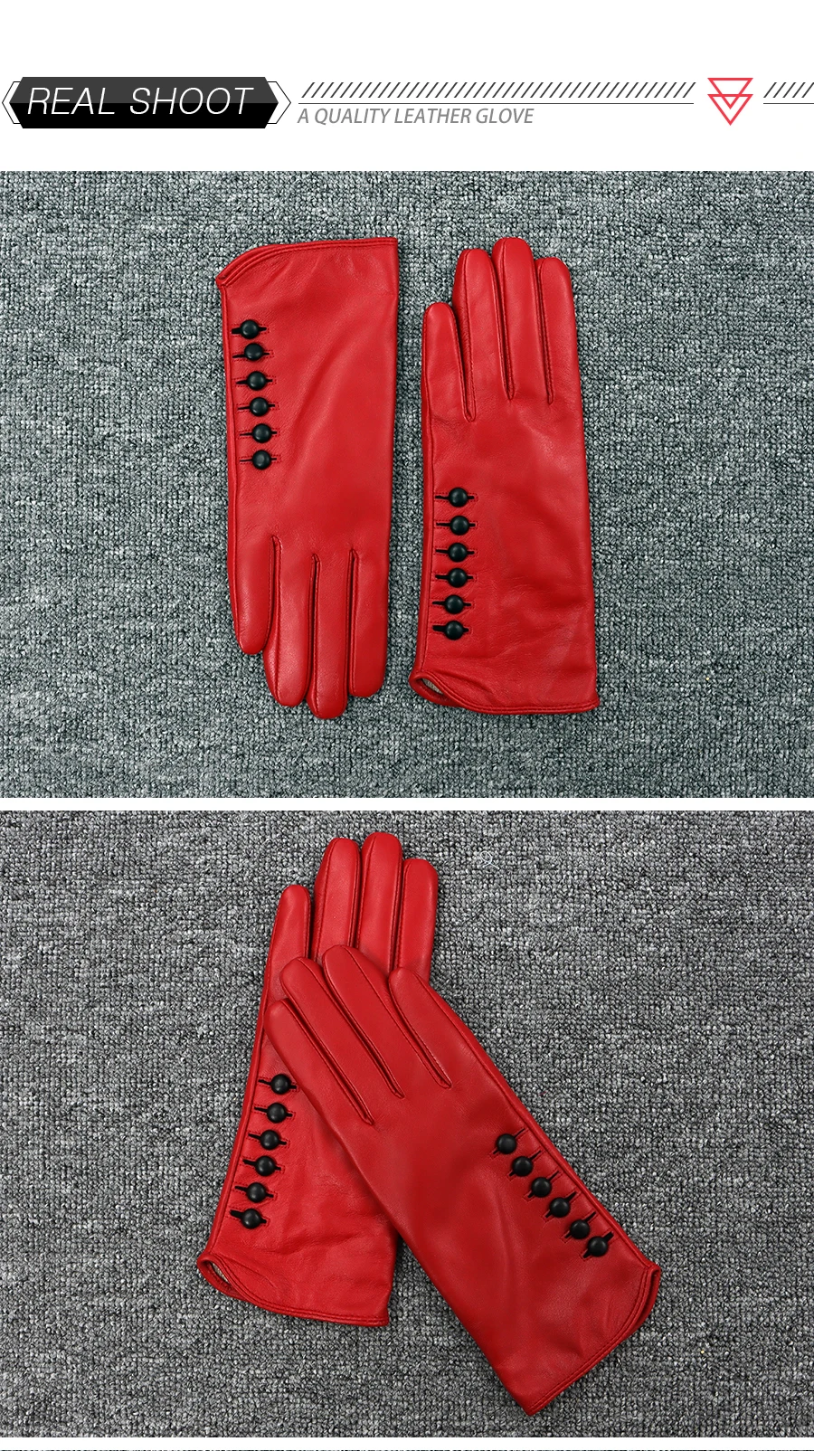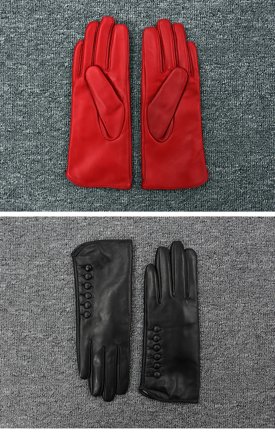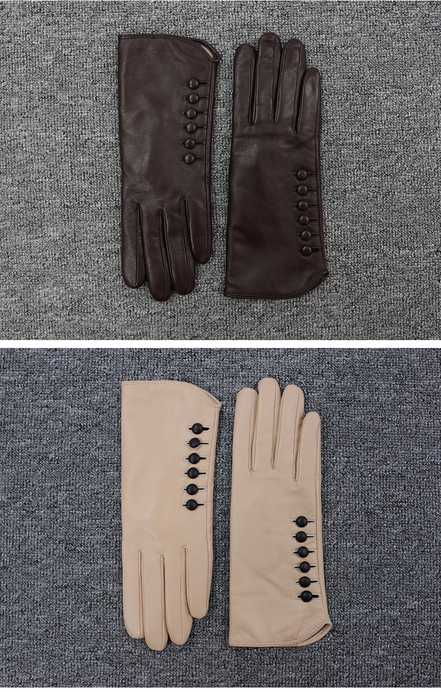 New Women Gloves Genuine Leather Winter Autumn Ladies Fashion Brand High quality goat skin Warm 6 buckle Colored mittens