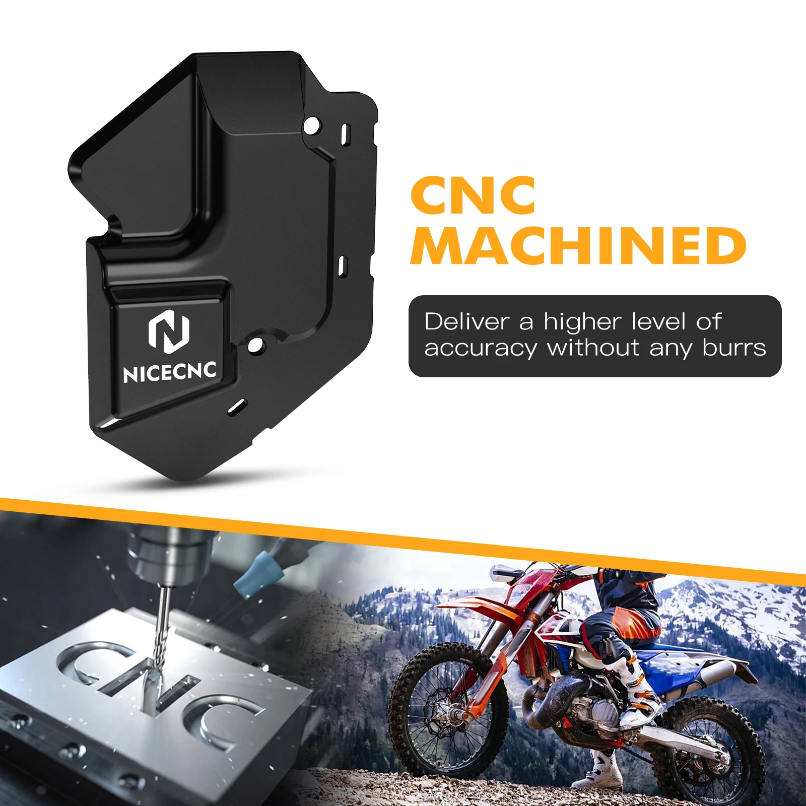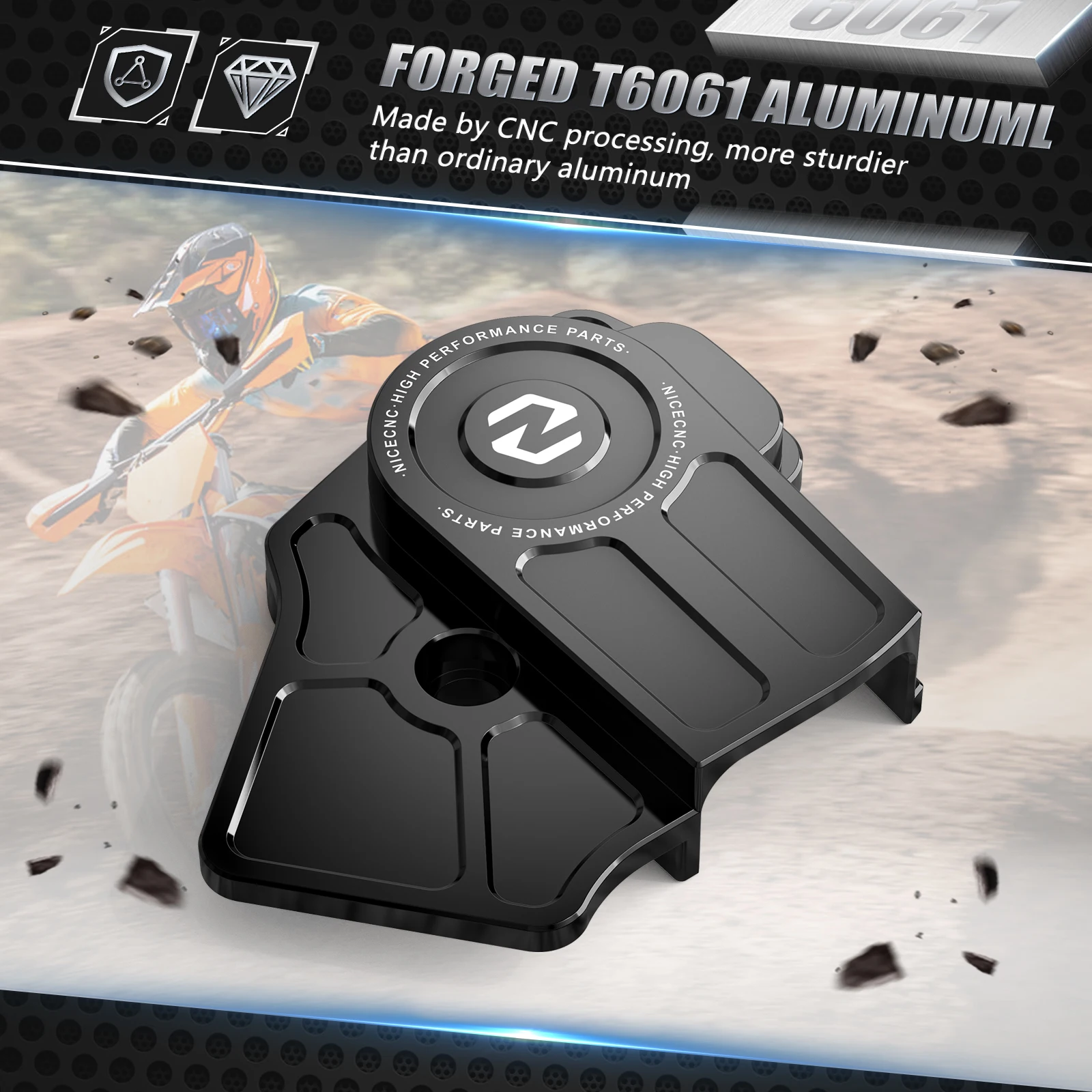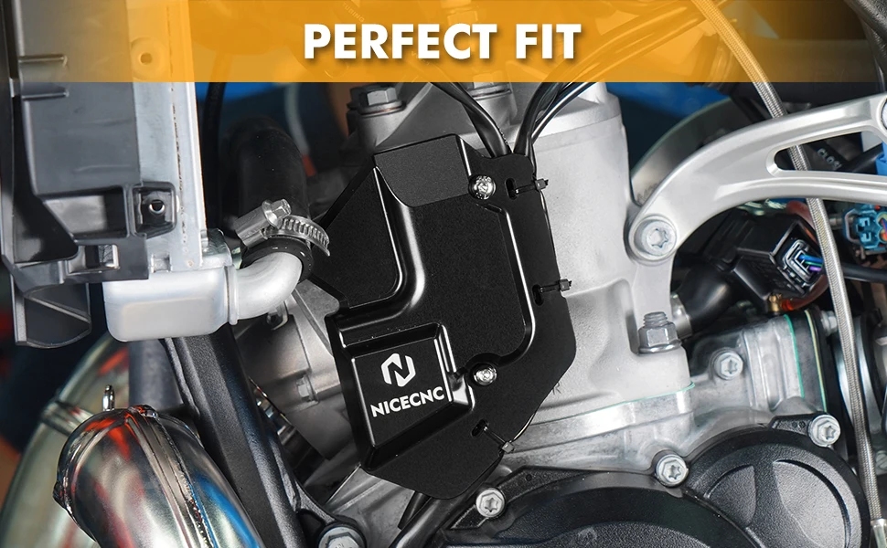 The stock throttle body guard on KTM/HQV/GG TBI models after 2023 is flimsy plastic that doesn't completely cover the exposed throttle body and electrical connections. However, NiceCNC has come out with an aluminum throttle body guard that protects these areas where the stock guard doesn’t offer that protection.