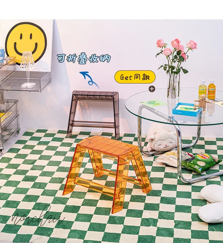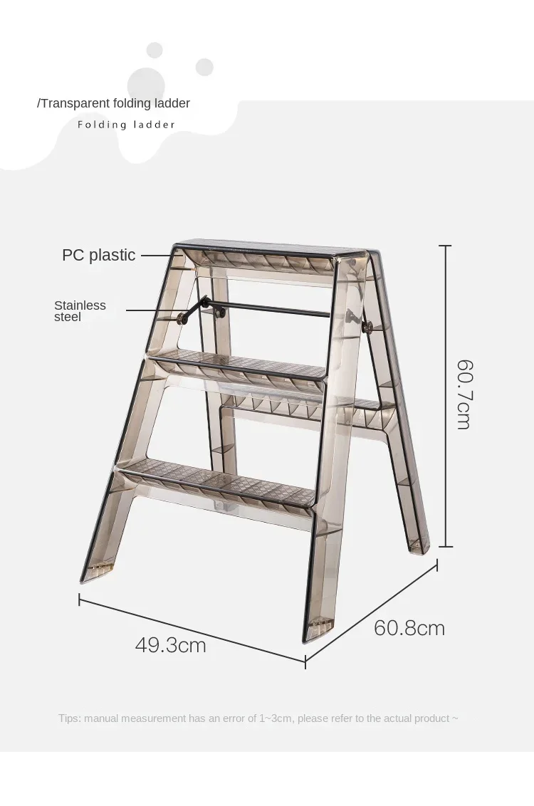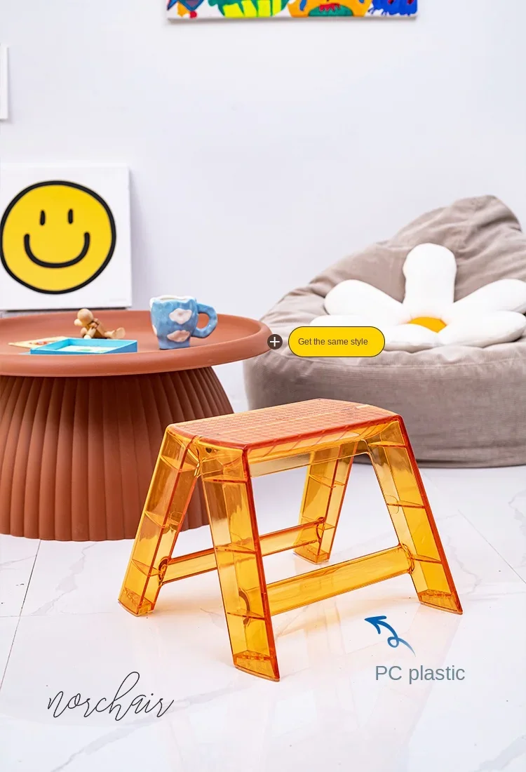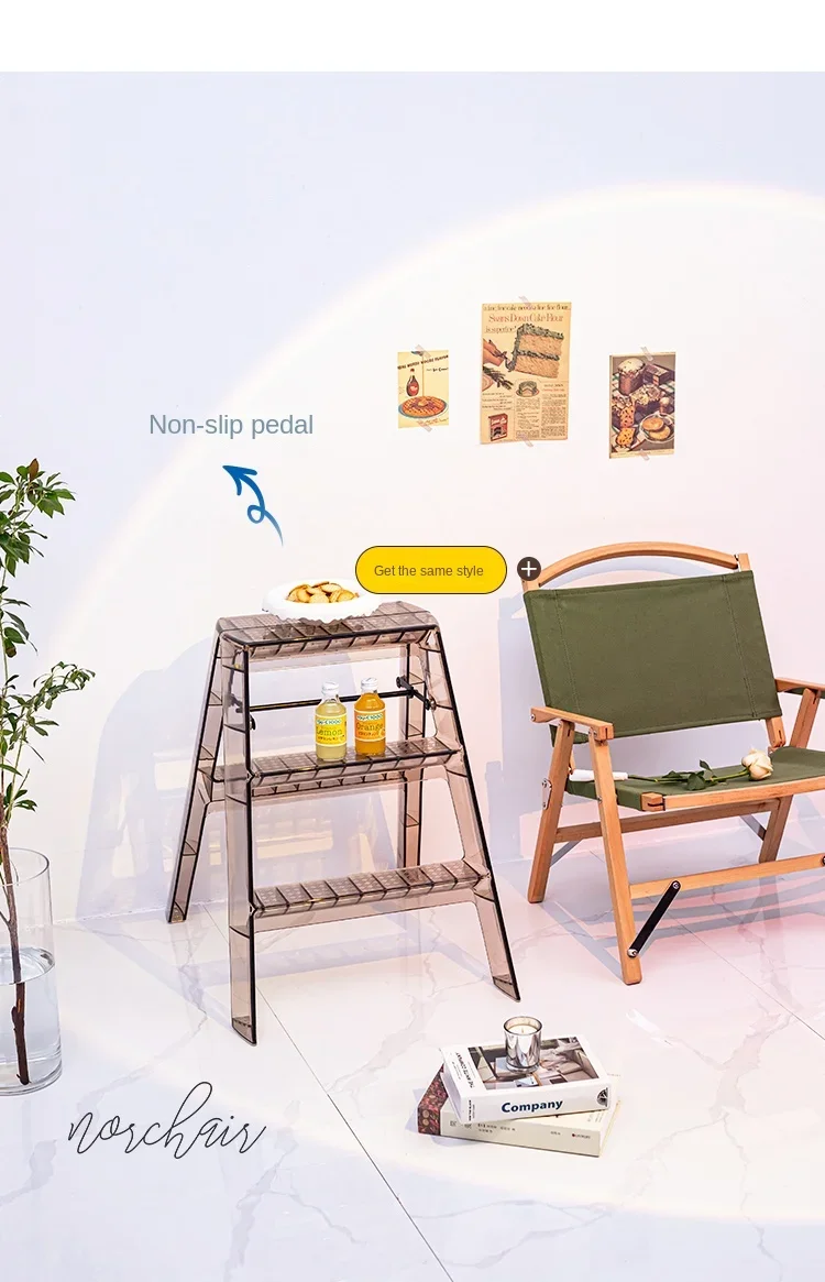 Transparent Acrylic Stool Step Ladder Non-slip Pedal 3 Step Ladder Nordic Light Luxury Ladder Folding High Stools Kitchen