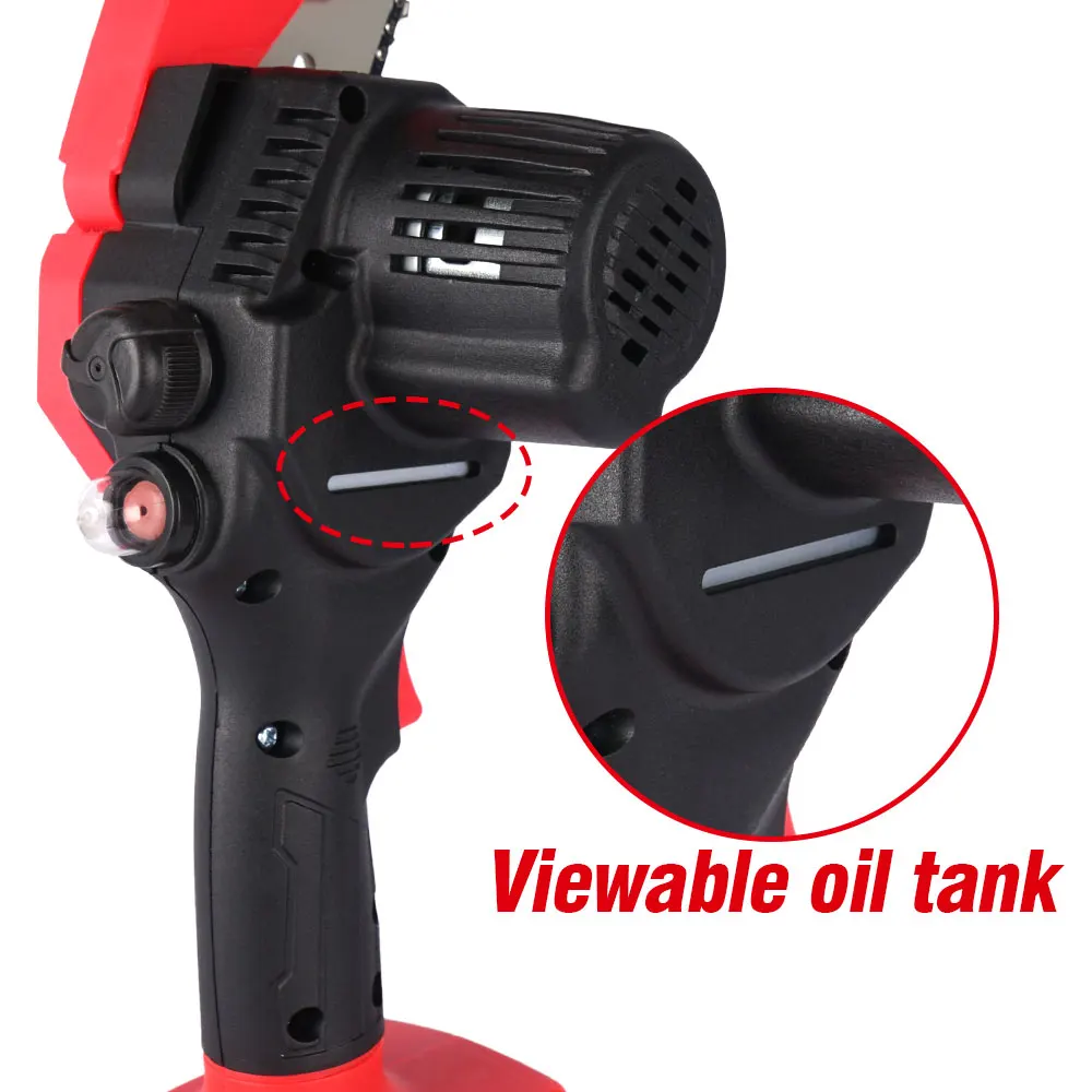 - Portable Design:Soft rubber handle, anti-skid and sweat-absorbing; Widen baffle design, to prevent wood chips from splashing during cutting;Heat dissipation hole design, efficient ventilation and heat dissipation.