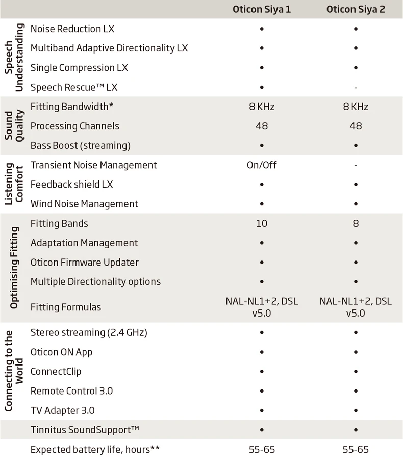 Oticon Siya miniRITE is small and discreet, with a single push button. Oticon Siya miniRITE T is based on the popular miniRITE, and features telecoil and a convenient double push button. Oticon Siya is built on the powerful Velox™ platform, processing sound in 48 channels for highresolution sound quality.Oticon Siya is a Made for iPhone® hearing aid that offers a full connectivity package built with 2.4 GHz