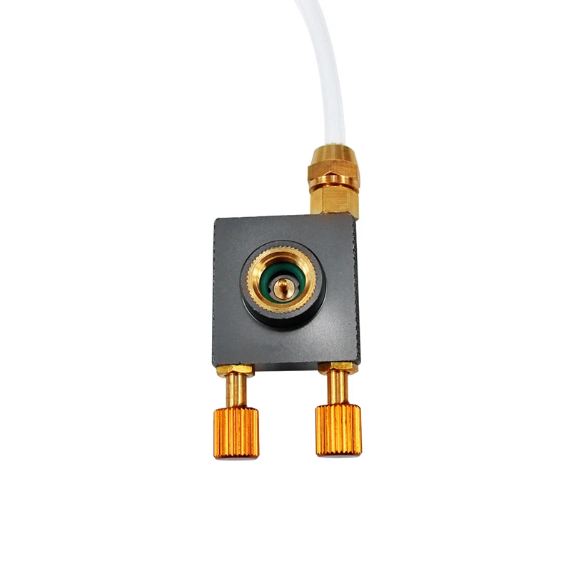 The nut at the end of the gas tank is copper, safe and explosion-proof. The flat gas tank is designed with double switches. The two switches for filling and pressure relief are in one valve body, which is very convenient to use. outer diameter 6mm, inner diameter 4mm, pressure resistance 3.1Map.