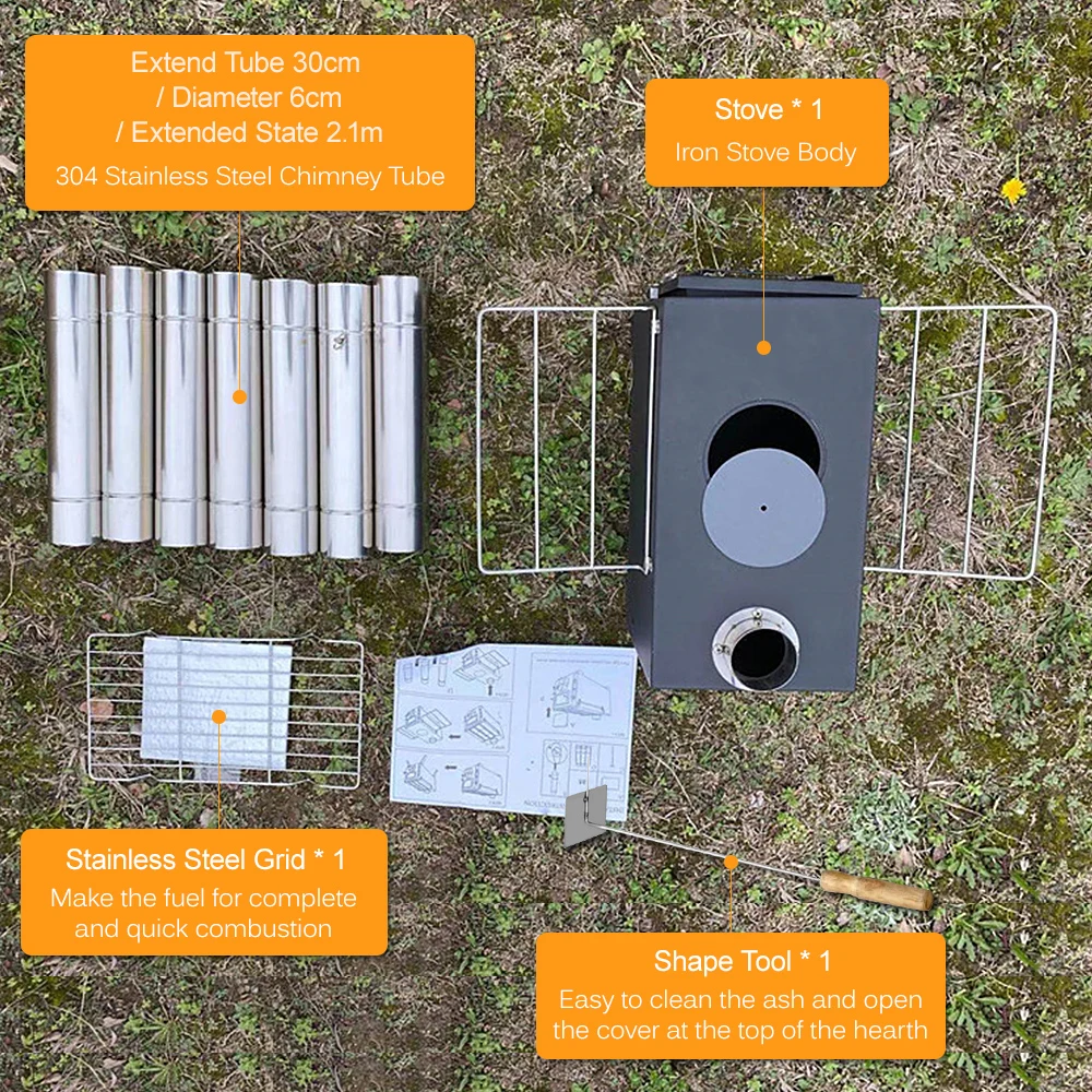 Package List: 1 * Stove /1 * T-Shape Tool /1 * Mesh /1 * Glass /6 * Chimney Tube