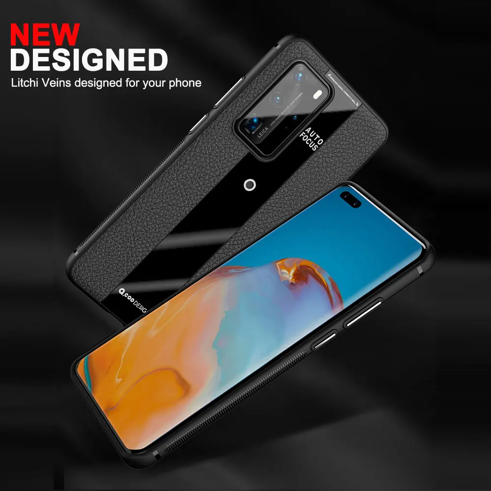Luxury Litchi Veins Silicone Phone Case For Huawei P40 Pro +