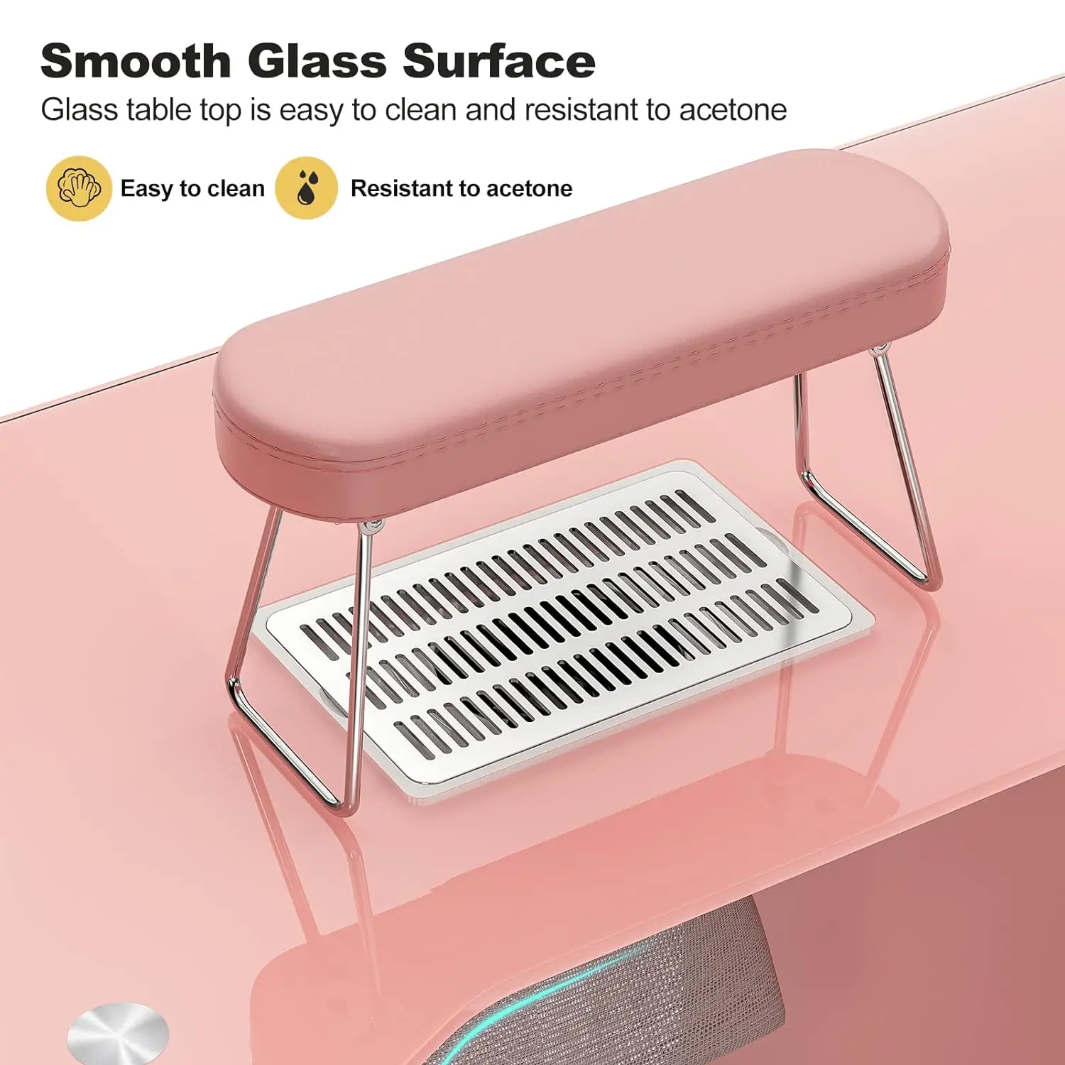 - ?[ERGONOMIC DESIGN] - The dimension of the nail station tabletop is about 43"L x 18"W, giving you enough room to manicure the nails for yourself or your clients. Comes with soft sponge-filled foldable nail arm rest for providing support to client's arm comfortably, helping relieve soreness caused by long-time manicure.