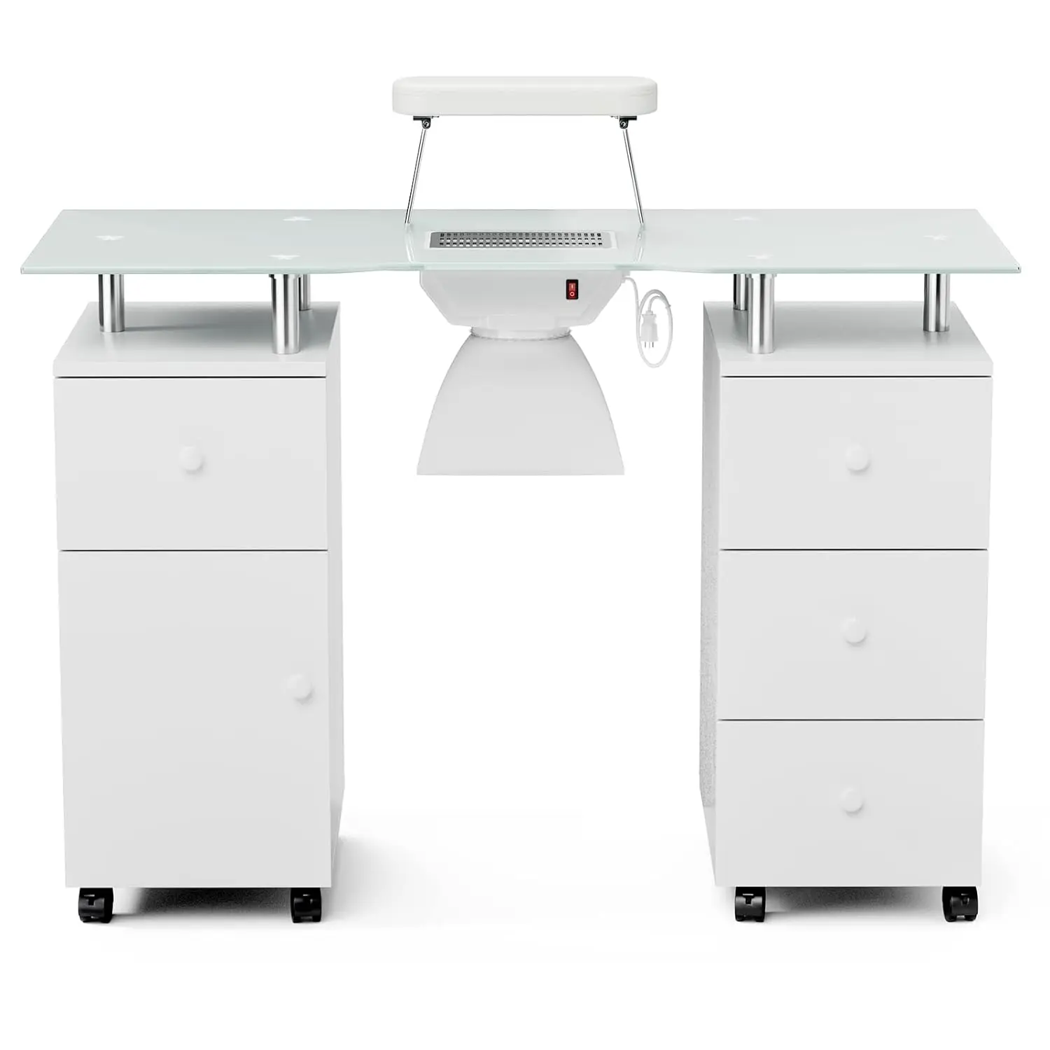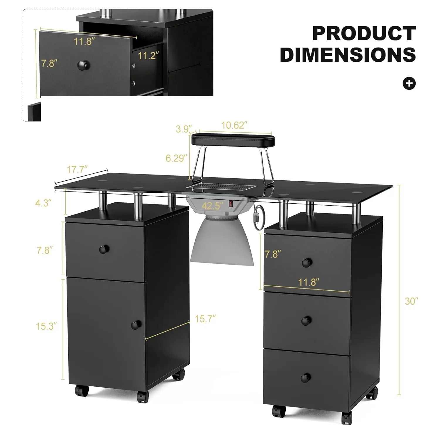 - ?[SPACIOUS STORAGE SPACE] - The professional manicure table is designed with 1 side cabinet and 4 drawers, which provides for professional manicurists to store various kinds of little polishing products and heavy items. High quality drawer rail and damper hinge insuring smooth and quiet movements.