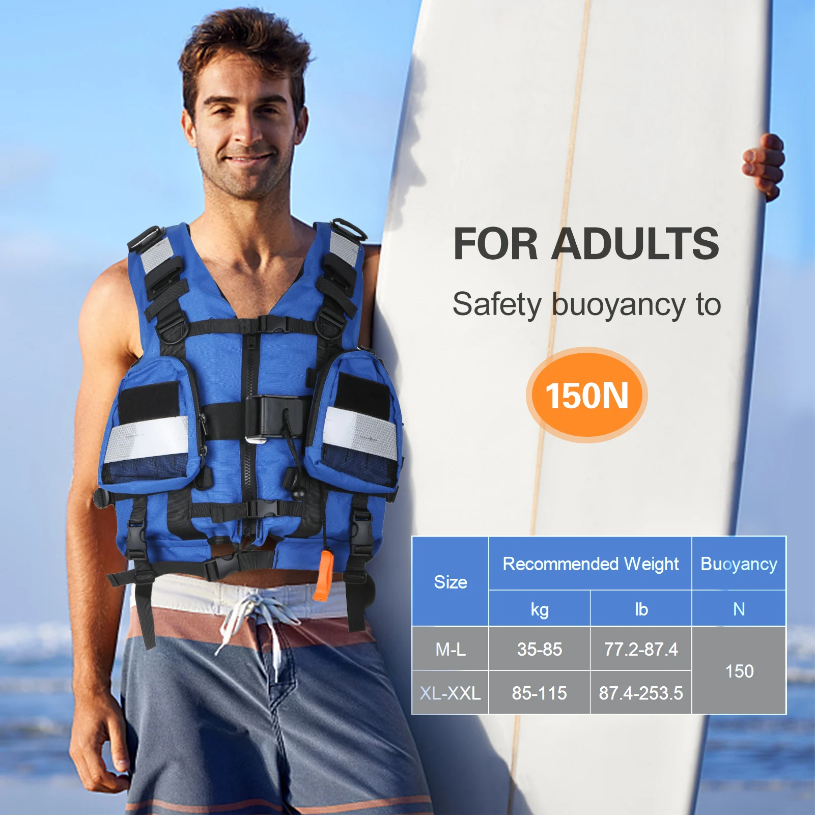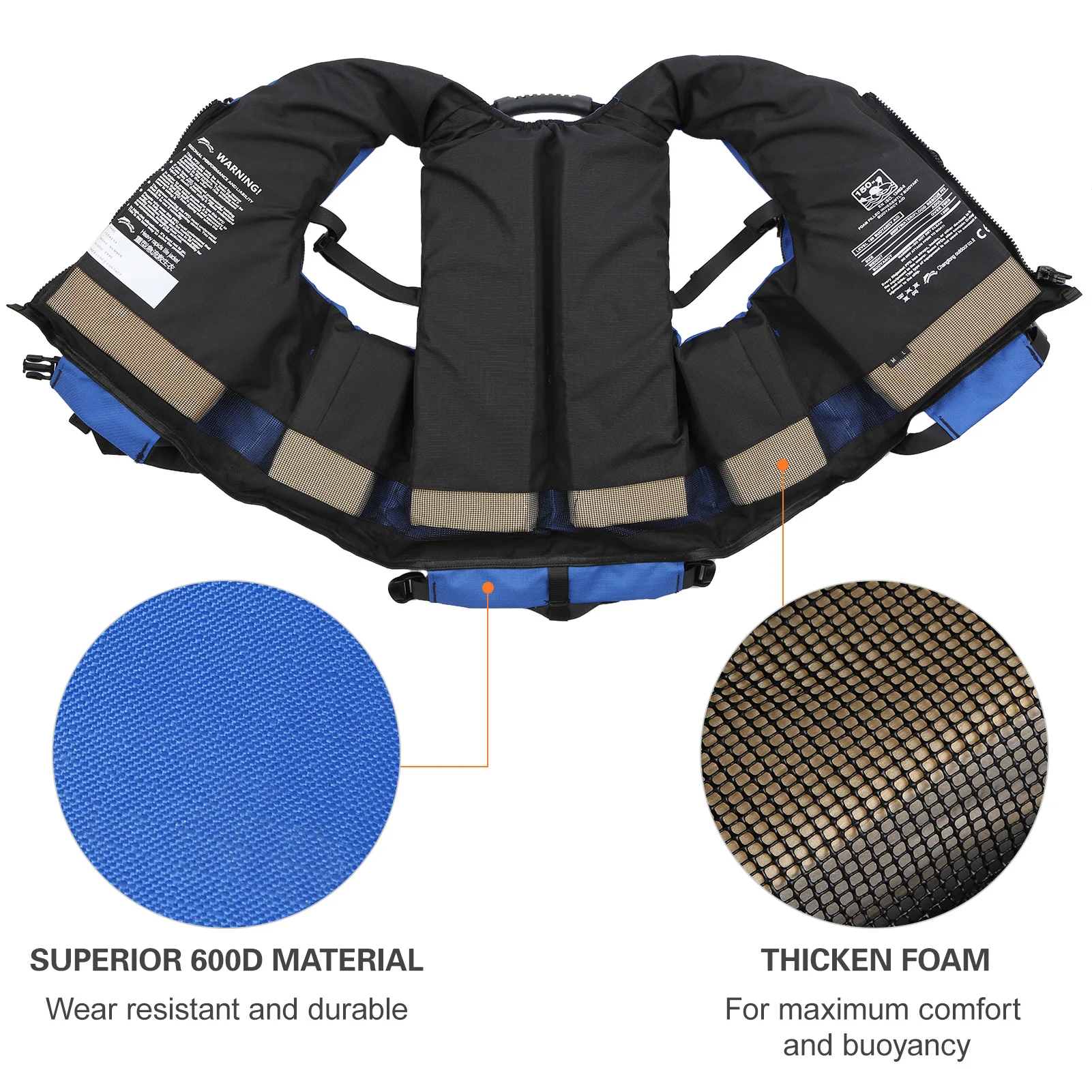 Great safety life vest for water sports, such as swimming, surfing, kayaking, water skiing, tubing and more.