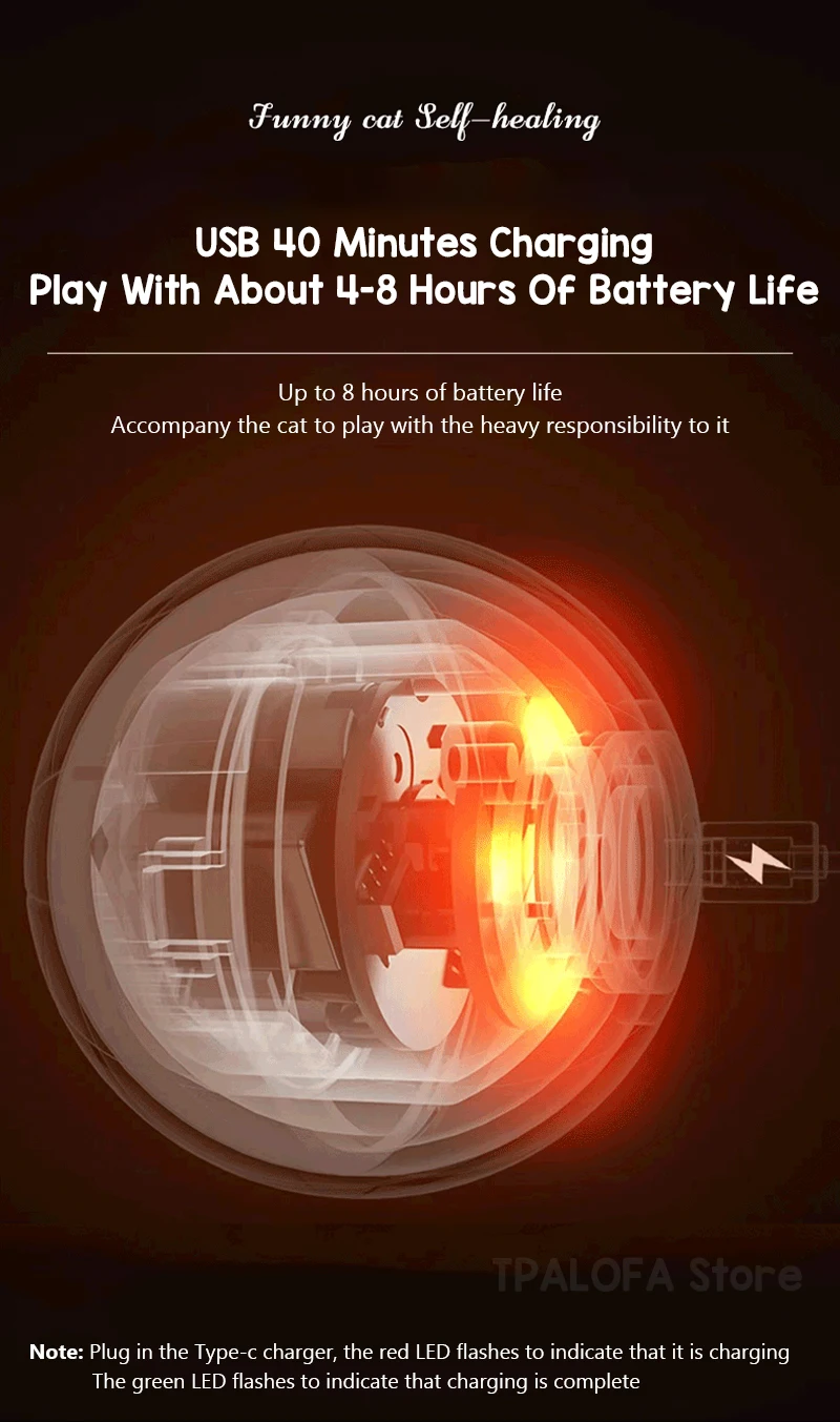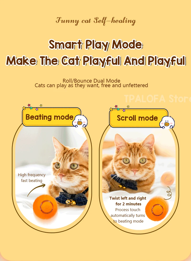 Interactive Cat Toys Ball Stimulate Hunting Instinct Kitten Funny Chaser Roller Toy 360 Degree Rotating Smart Electric Ball USB Rechargeable