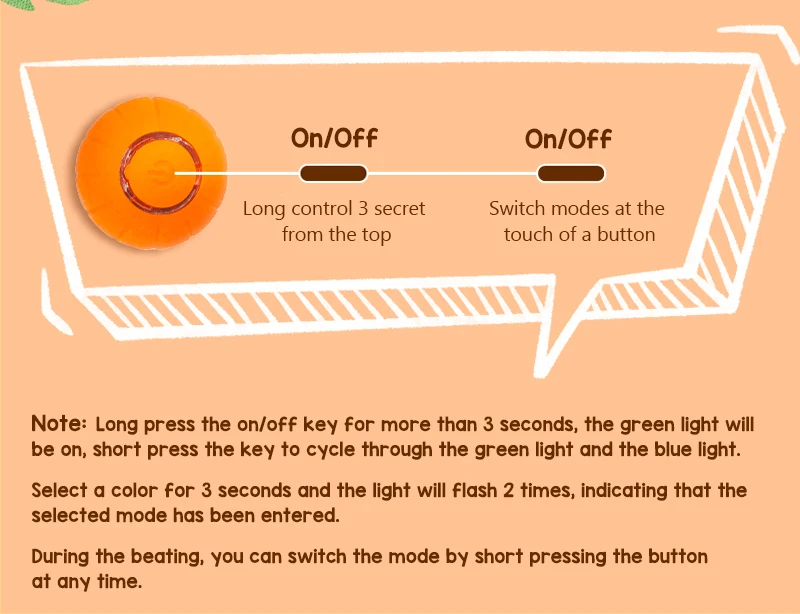4.In normal mode (green indicator light stays on for 3 seconds), the ball will automatically turn off after 5 minutes of operation.