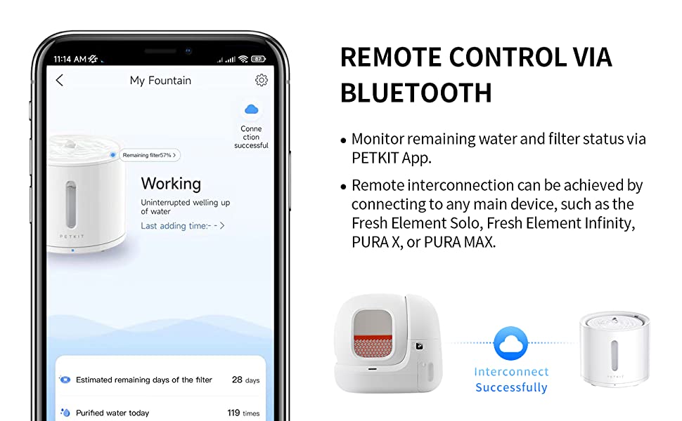 [APP Control via Blue-tooth] You can check the status of the water fountain on the app at any time, the app will remind you when the water level is low