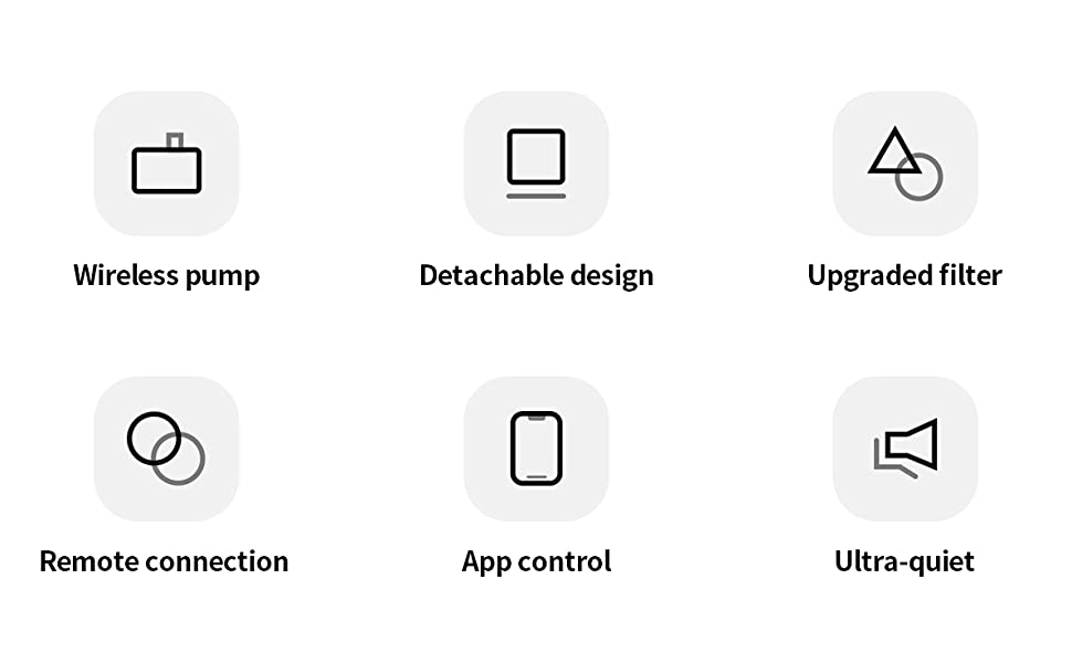 [Ultra Safe] There are no wires on the water pump, which is very safe. Although the base of the device is powered by a USB cable, but the base and the water fountain body can be separated, making operation safer and easier.