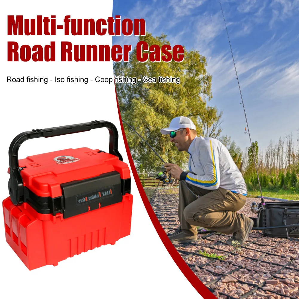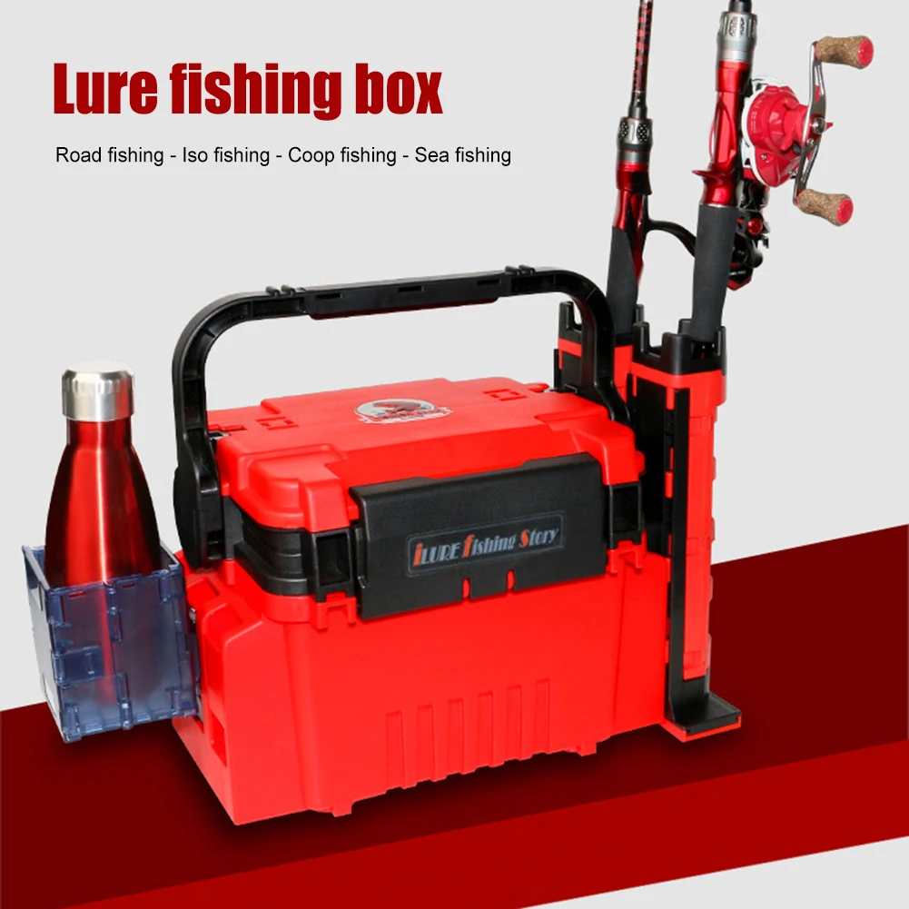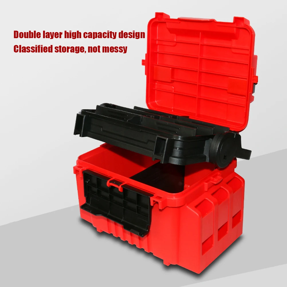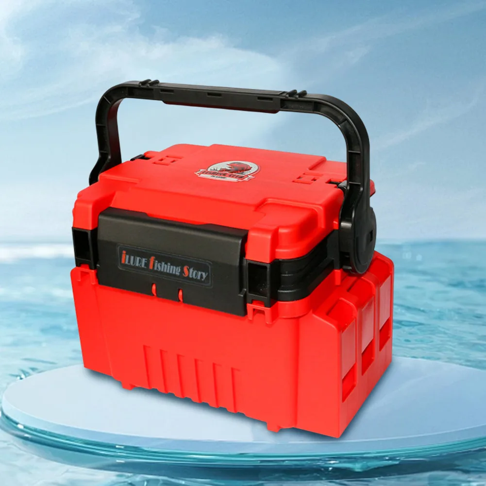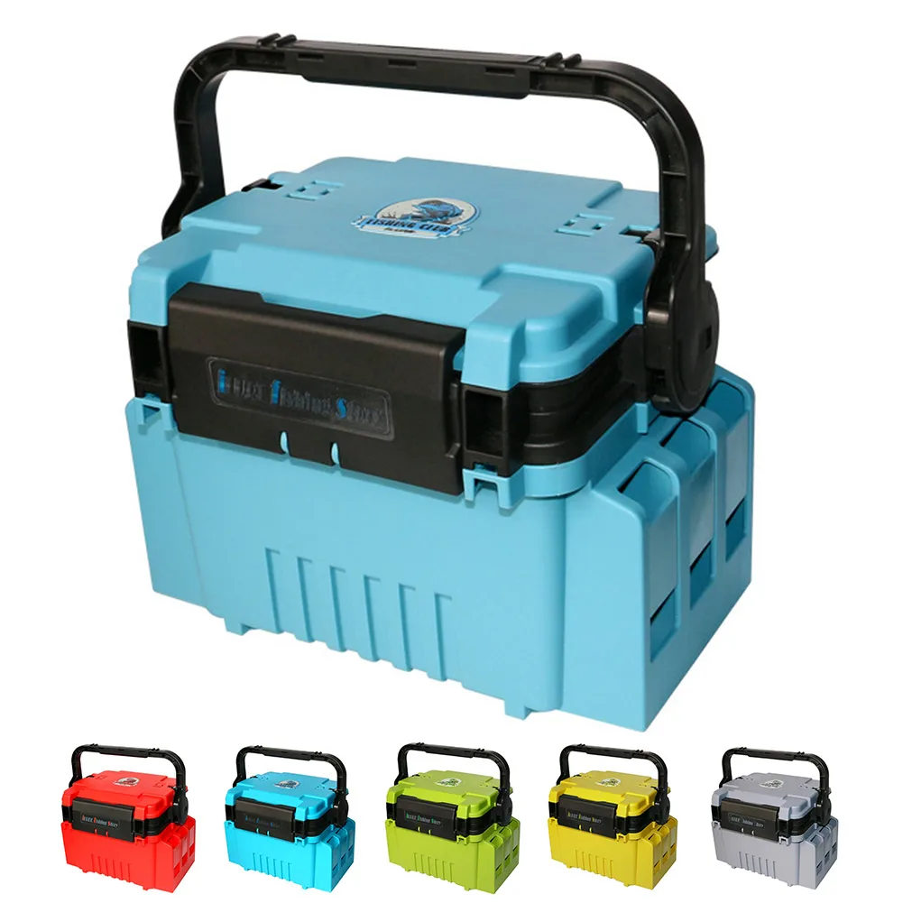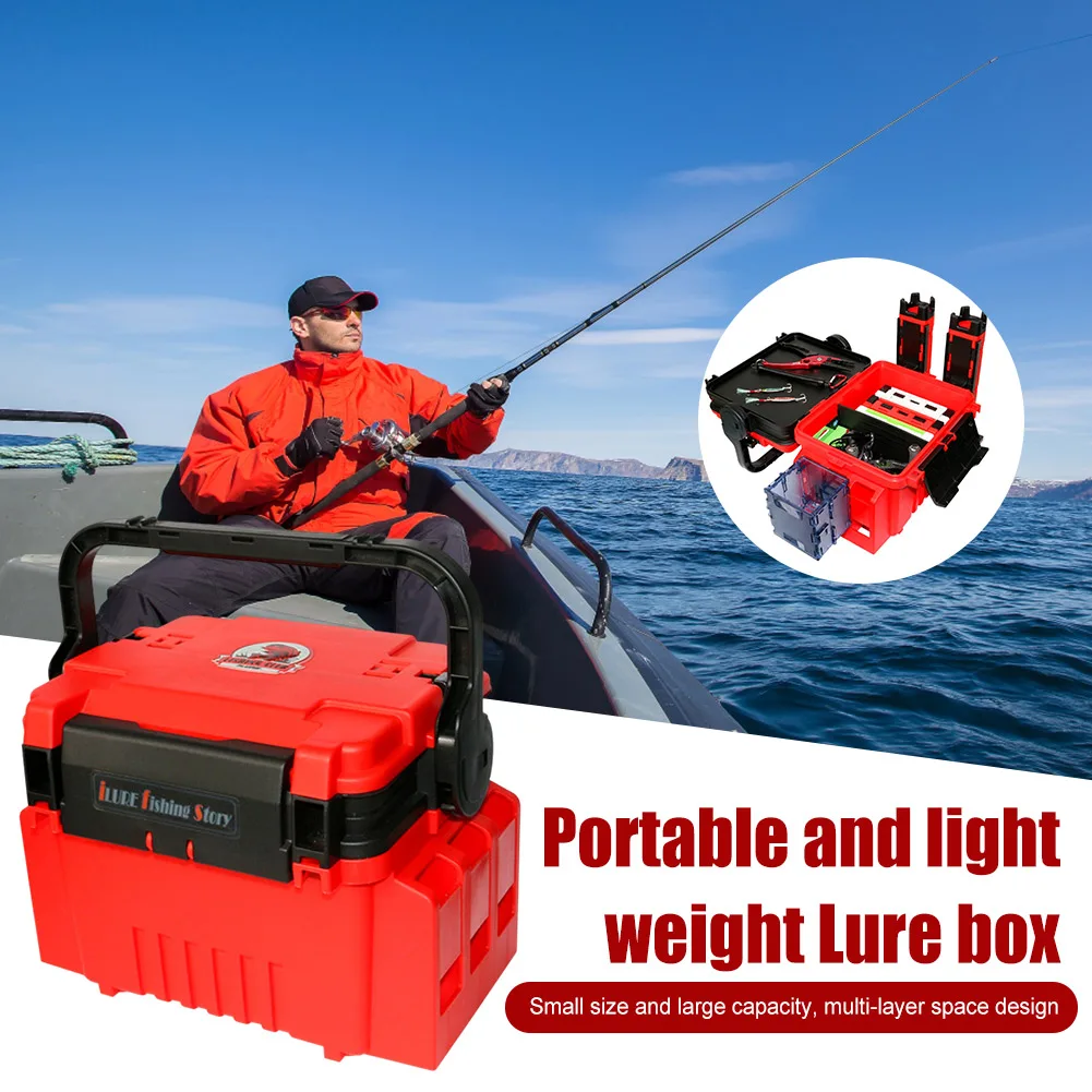 Features: 1. High quality material: Made of ABS+PP material, durable and environmentally friendly. 2. Large capacity: Double layer large capacity design, classified storage, improving usage efficiency. 3. Convenient to use: The handle can be fixed and turned into a console for easy operation. 4. Safe: Independent locking buckle with self-locking and manual locking functions, making it safer and more reliable. 5. Anti slip: The bottom is equipped with anti slip pad design, which is not easy to slide and more durable. Specification: Origin: Mainland China Model Number: Fishing Tackle Box Product material: ABS+PP Product colors: red, celeste, blue, green, yellow, gray (optional) Product size: 31.5 * 23 * 17.7cm/12.4*9.06*6.97inch