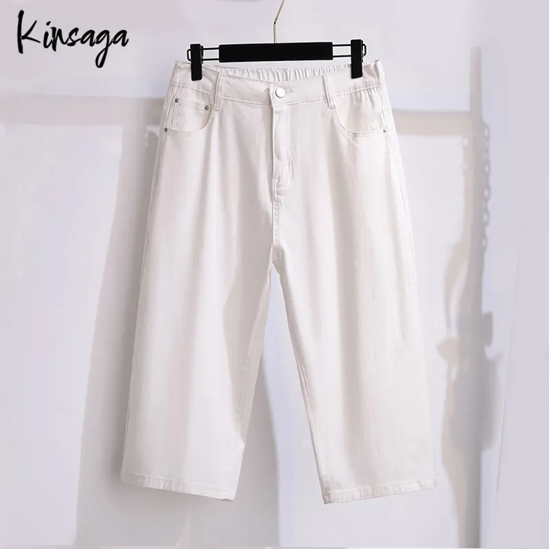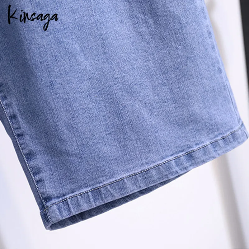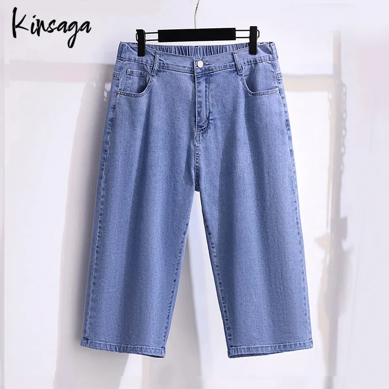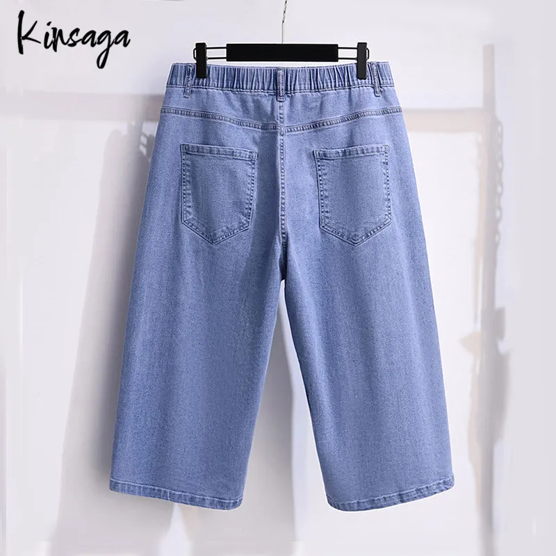 Choose Options Quick view Plus Size Elastic Waist Wide Leg Capris Jean Women 7xl Street Slouchy Revers Folds Knee Length fifth Demin Simple Cuffed Pants $37.39 Details picture