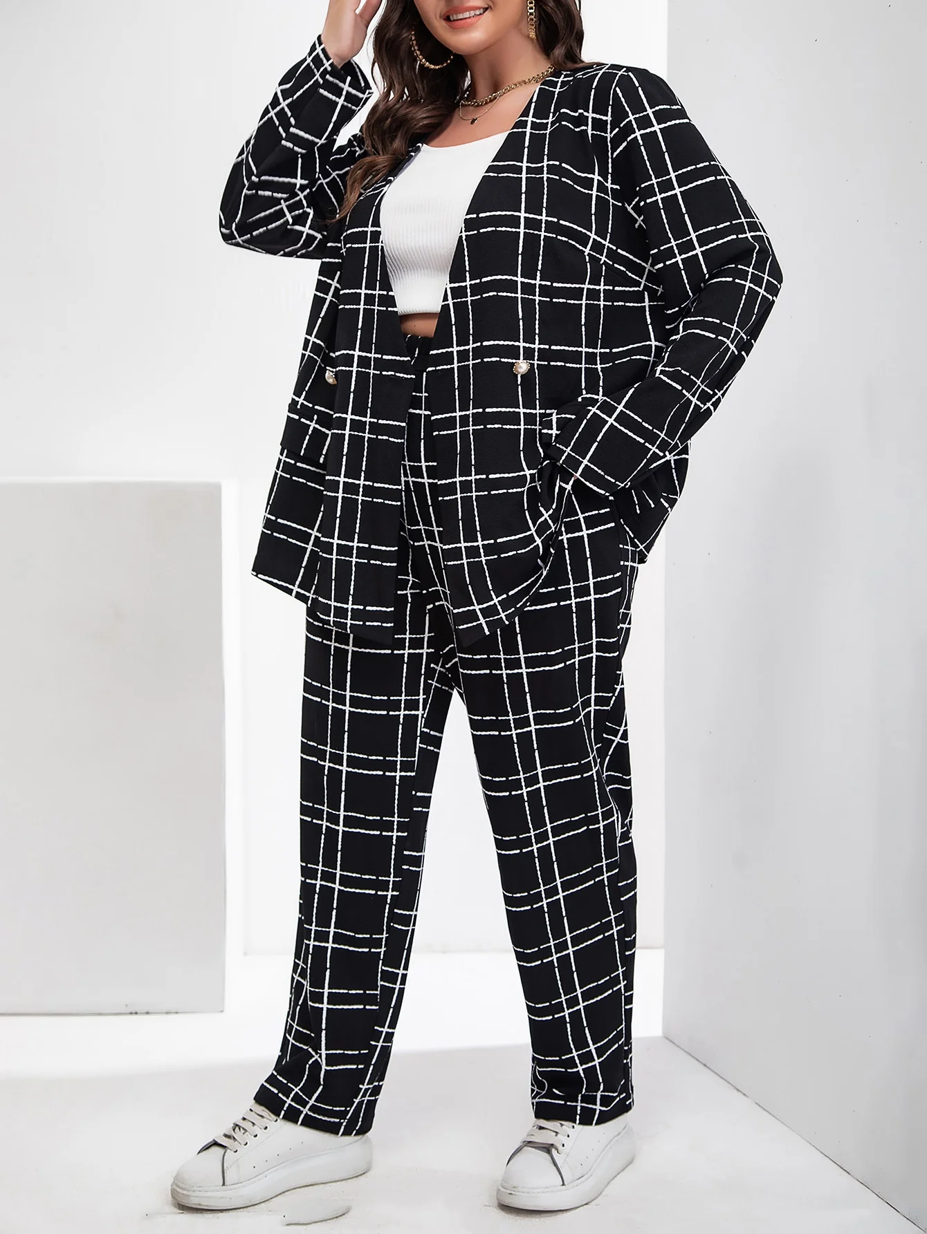 Choose Options Quick view 4xl Plus Size Blazer Women Clothing LOOSE Tailored Collar Long Suit Jacket Casual Fashion Black Double Breasted Outwear Autumn $79.83