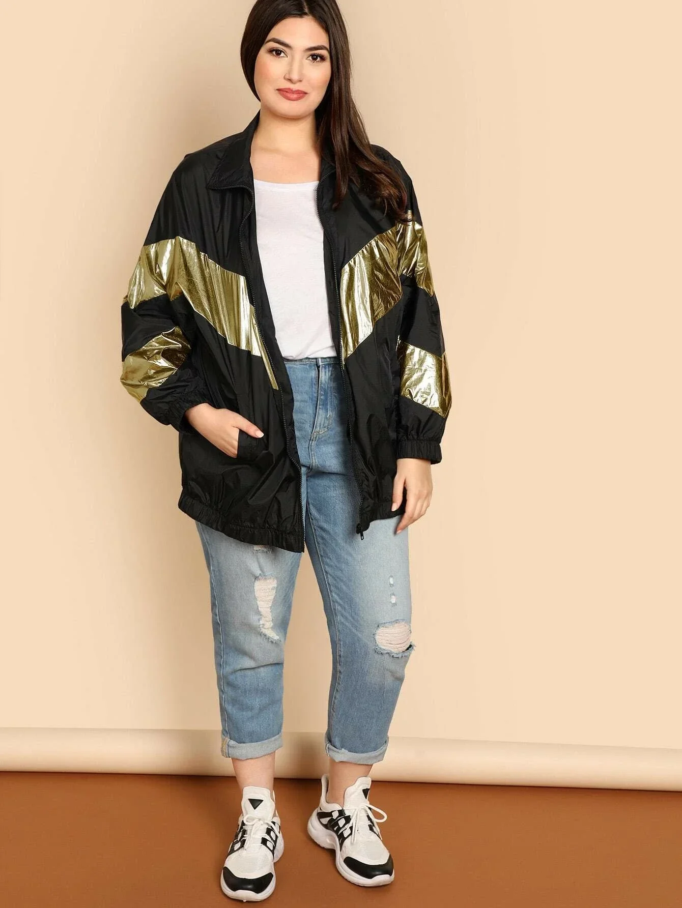 Details:Zipper Front,Elastic Cuff And Hem,Double Pockets,Loose Oversize Style