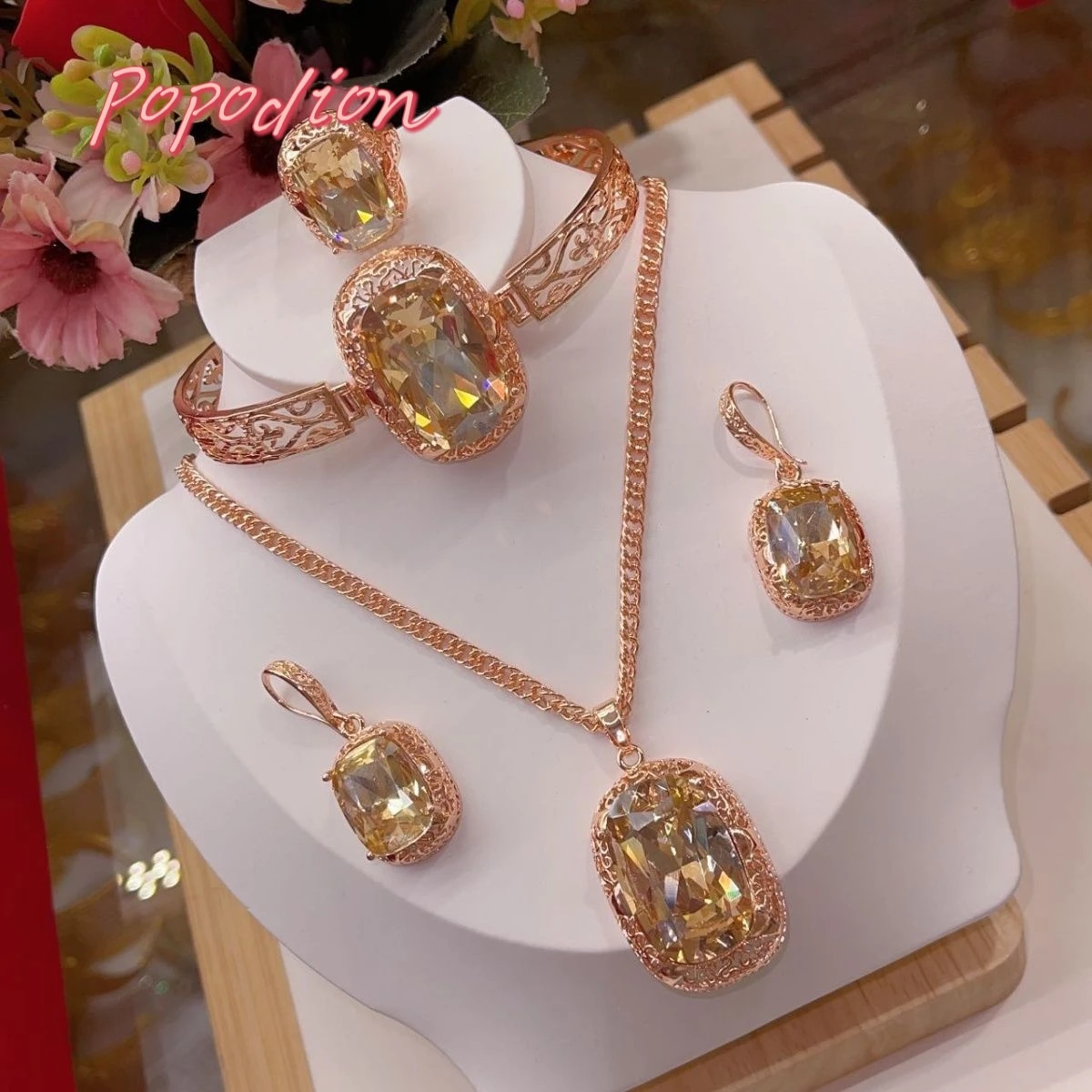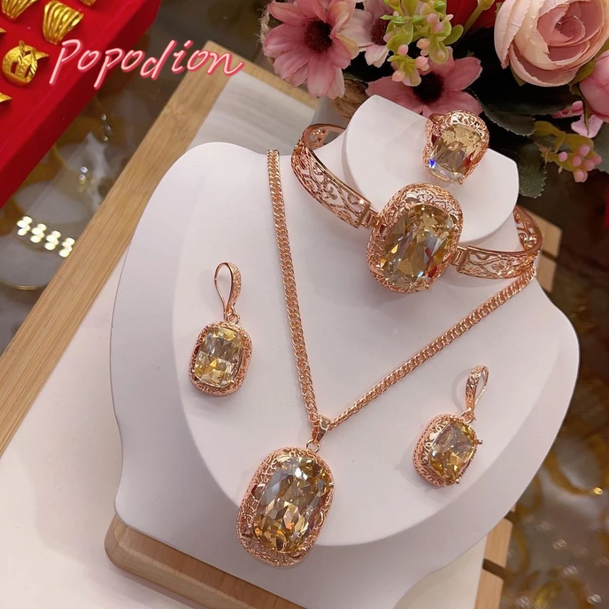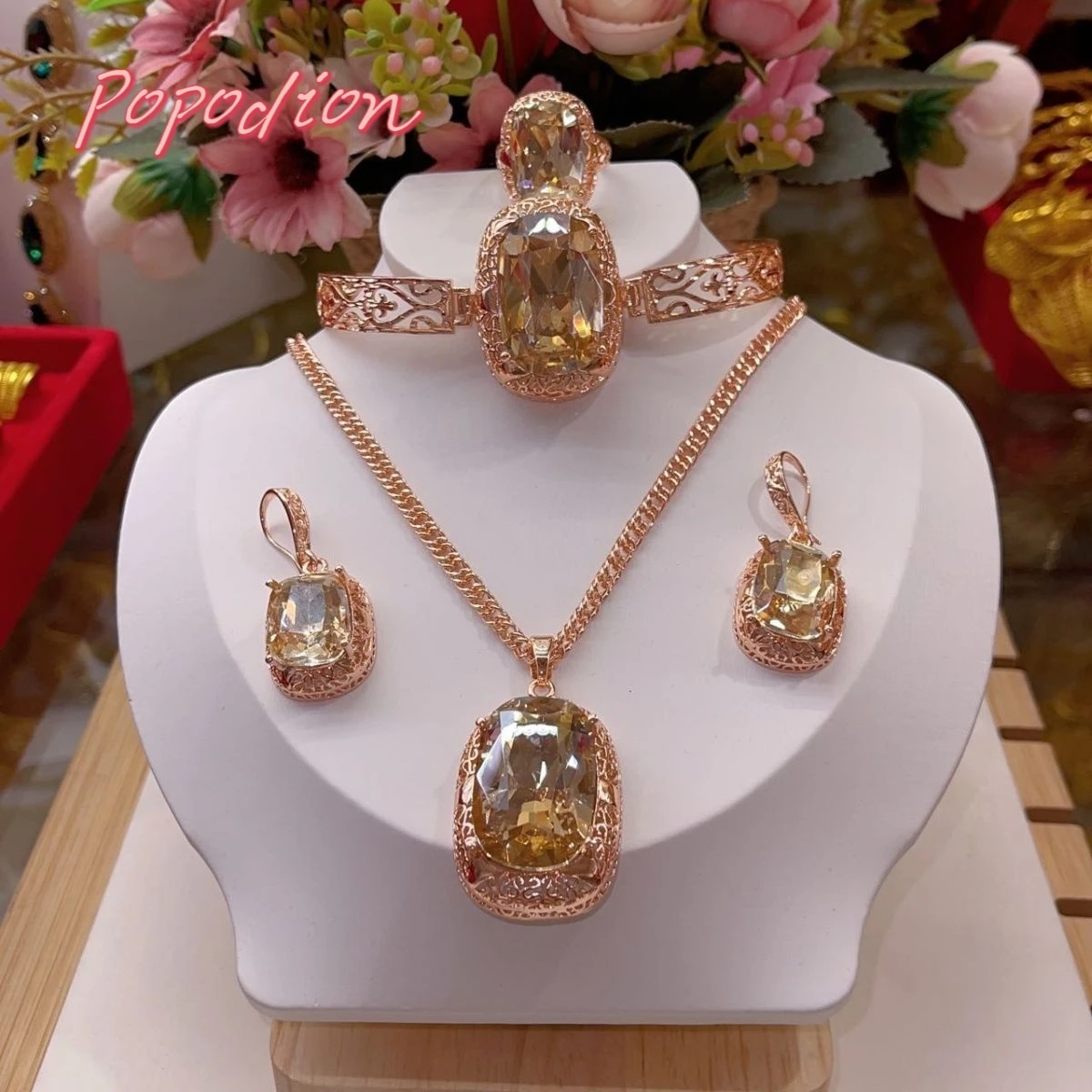 Description Description Popodion New Dubai 24K Gold Plating Jewelry Necklace Earrings Bracelet Women's Ring Bridal Wedding Jewelry Set Of Four View AllClose