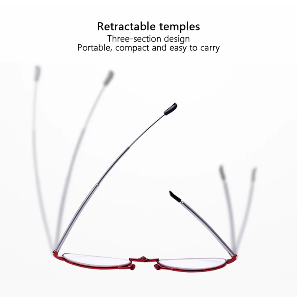 3. Compact design, retractable telescoping temples for easy folding compact storage.