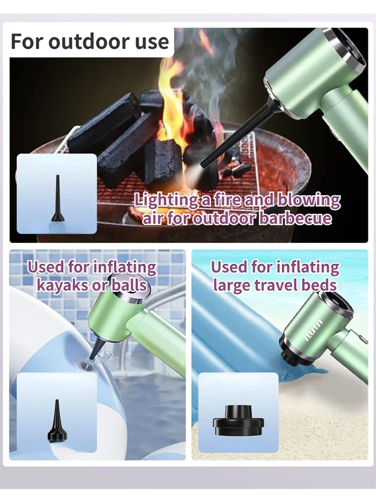 Compressed Air Duster - Equipped with an upgraded motor, Itutn Air Blower can produce super-strong airflow and clean dust and debris from keyboard, car air outlet, camera, fan, sofa gap and so on. Besides, it can be used to inflate swimming rings, inflatable decorations, yoga balls, etc.