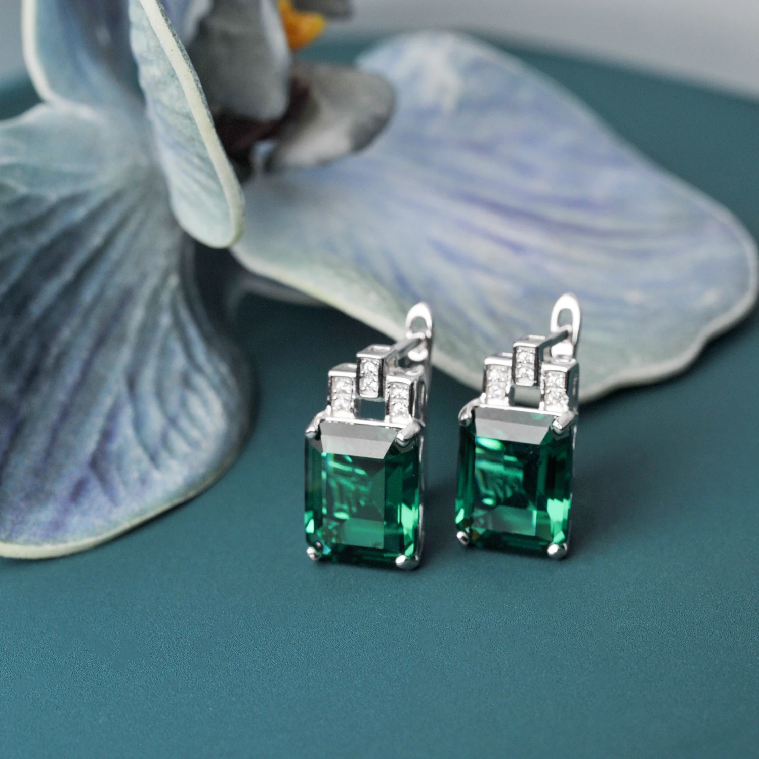 She’ll appreciate the stylish good looks of these fashion solitaire stud earrings. Crafted in 925 Sterling Silver, each earring dazzles with a bold 9.0 x 11.0mm emerald-cut lab-created verdant-green emerald. Buffed to a brilliant luster and certain to please, these post earrings secure comfortably with friction backs.