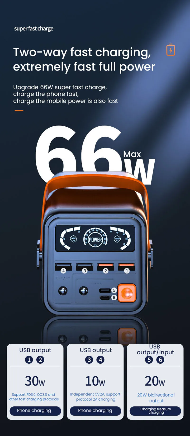 Charging power: PD45W(Support tablet laptop charging,such as for Macbook),PD20W(Does not support tablet laptop charging)