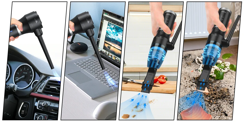 Hold the Air Duster and turn its middle part, switch the mode between blow and suction. Meet your different cleaning needs, simple and practical.