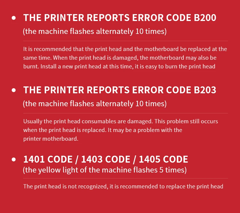 1. The printer reports error code B200 (the machine flashes alternately 10 times)