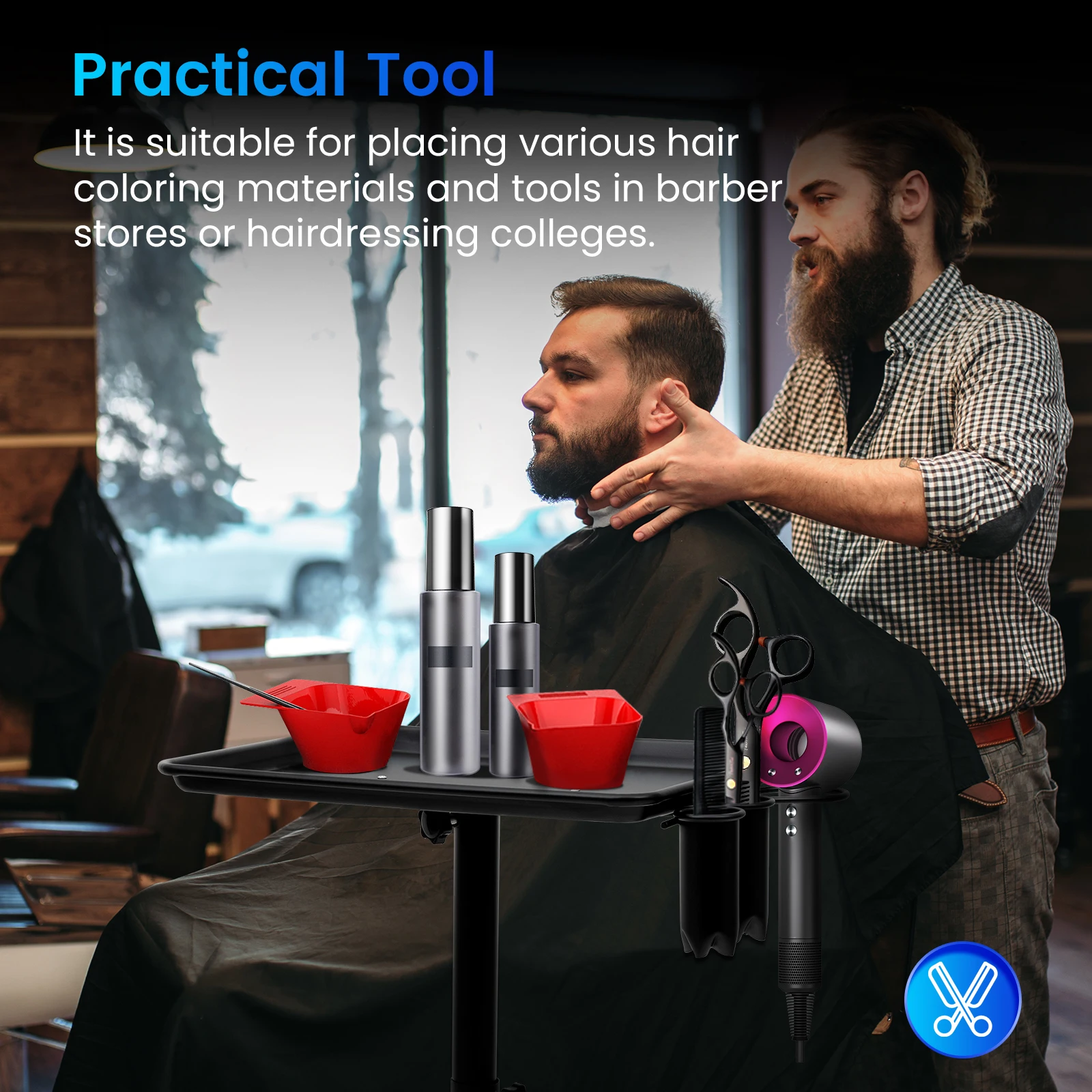 Easy to Move: The bottom of it is equipped with universal wheels, so it is very flexible. You can easily move it to the desired position, which is convenient for completing haircutting, hair coloring, etc.