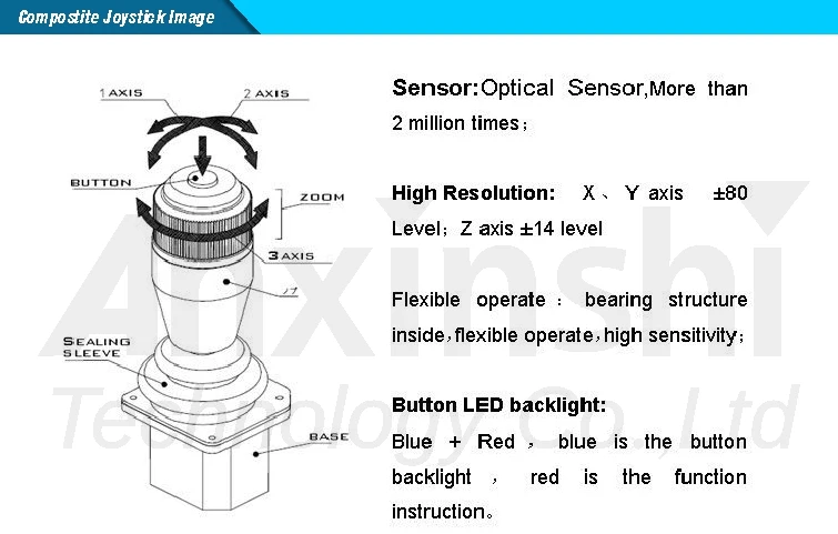 Joystick | 3 axis + 1 buttons, optical sensors, high precision |