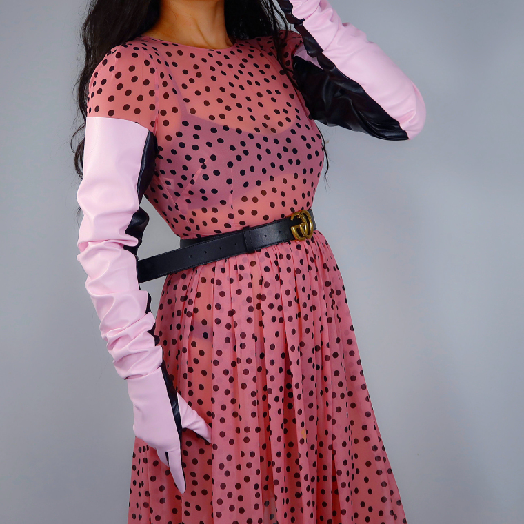 • PUFF LONG TECH GLOVES Vegan Leather 35" 90cm Touchscreen Black & Pink TWO TONE LLDLLNT