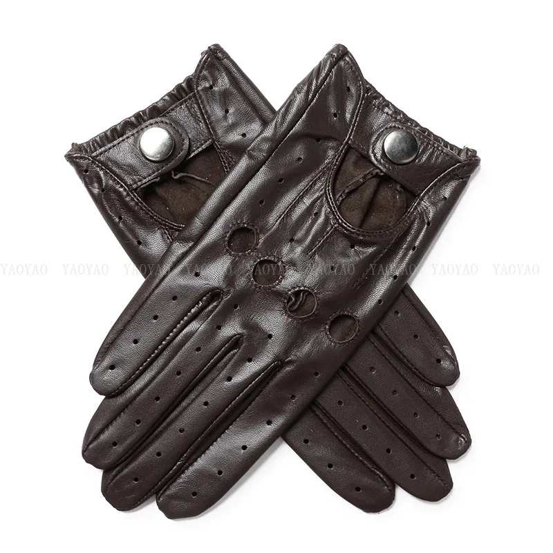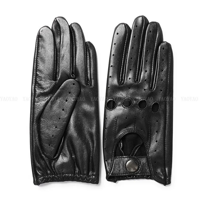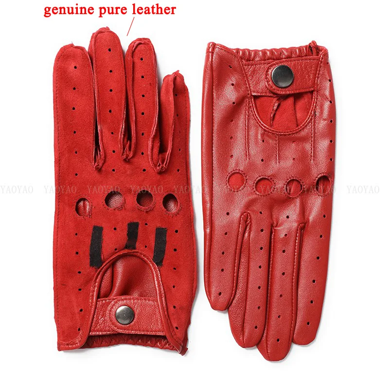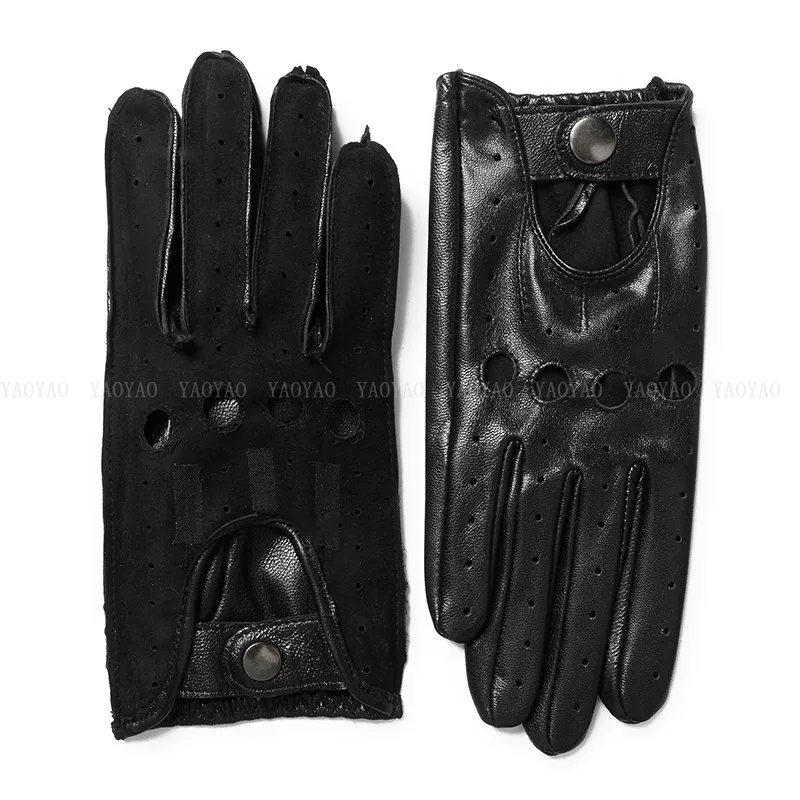 Pure Leather Glove For Men Male Top Quality Holes Locomotive