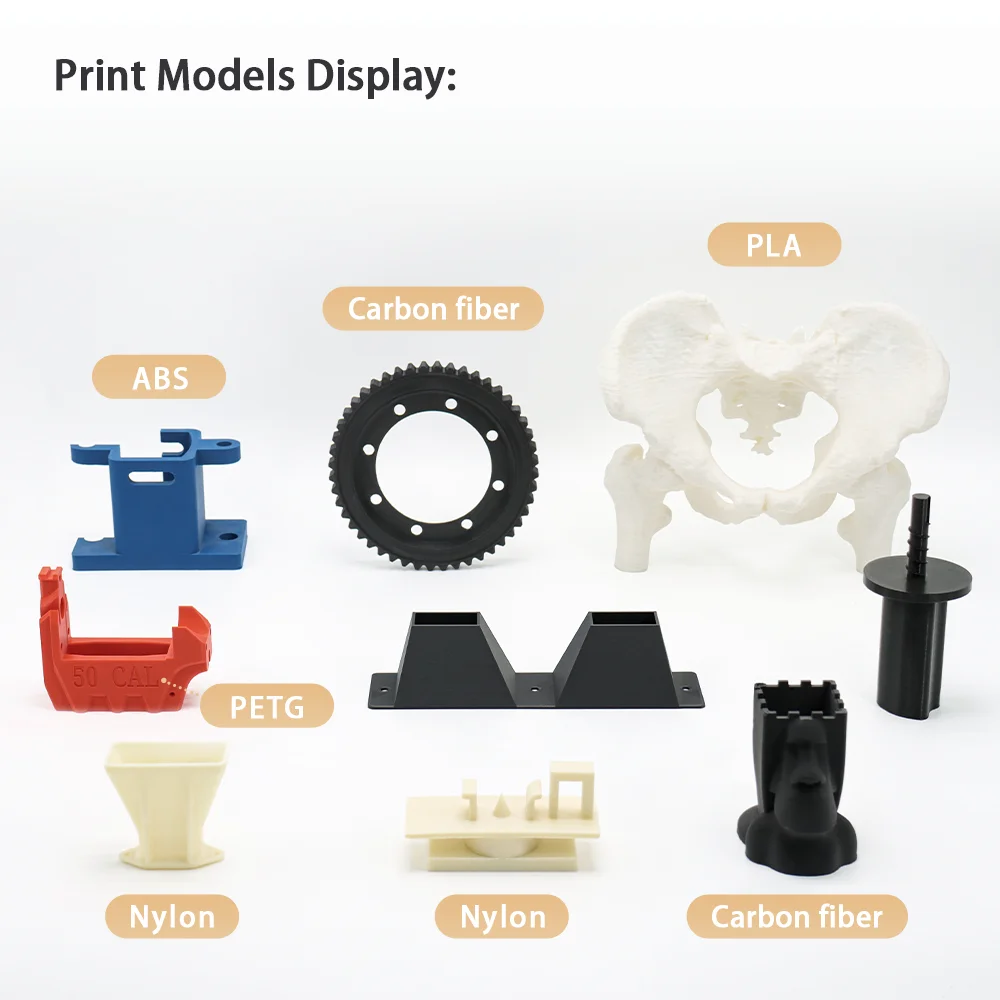 2.Freedom in the choice of the filament: iFast can print almost all kinds of filaments which suitable for FDM 3D printers on the market, such as PLA ,PLA+ ,ABS ,PETG, NYLON,etc. The iFast 3d printer equipped with a heated chamber, which can be heated to 60°C. The excellent mechanical structure can produce more robust manufacturing-grade parts.