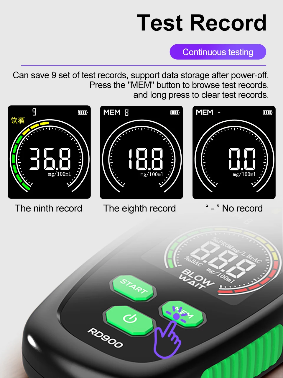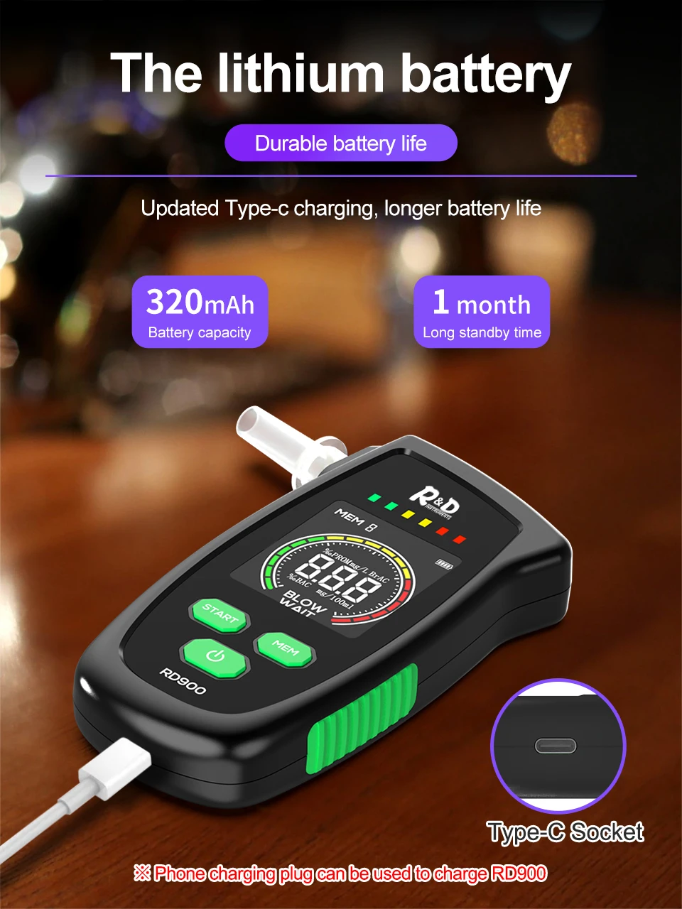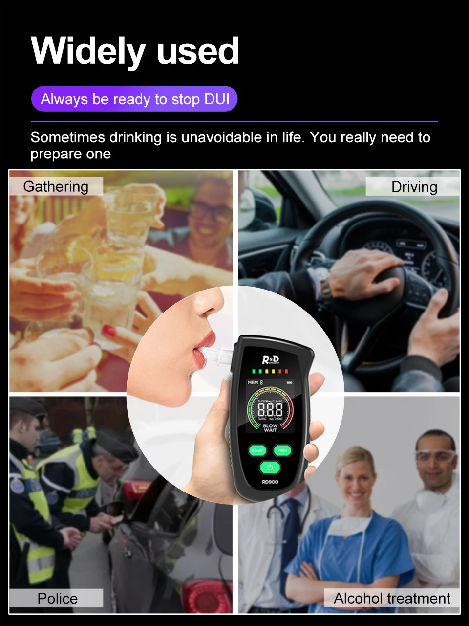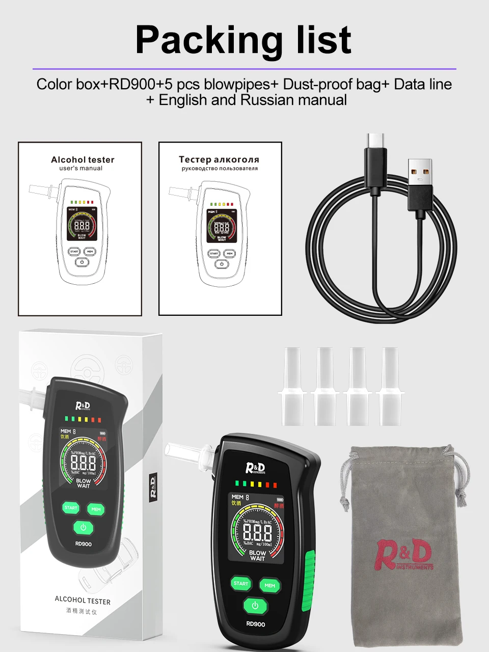 R&D RD900 New Digital Breath Alcohol Tester Mini Professional Police Alcohol Tester Breath Drunk Driving Analyzer LCD Screen